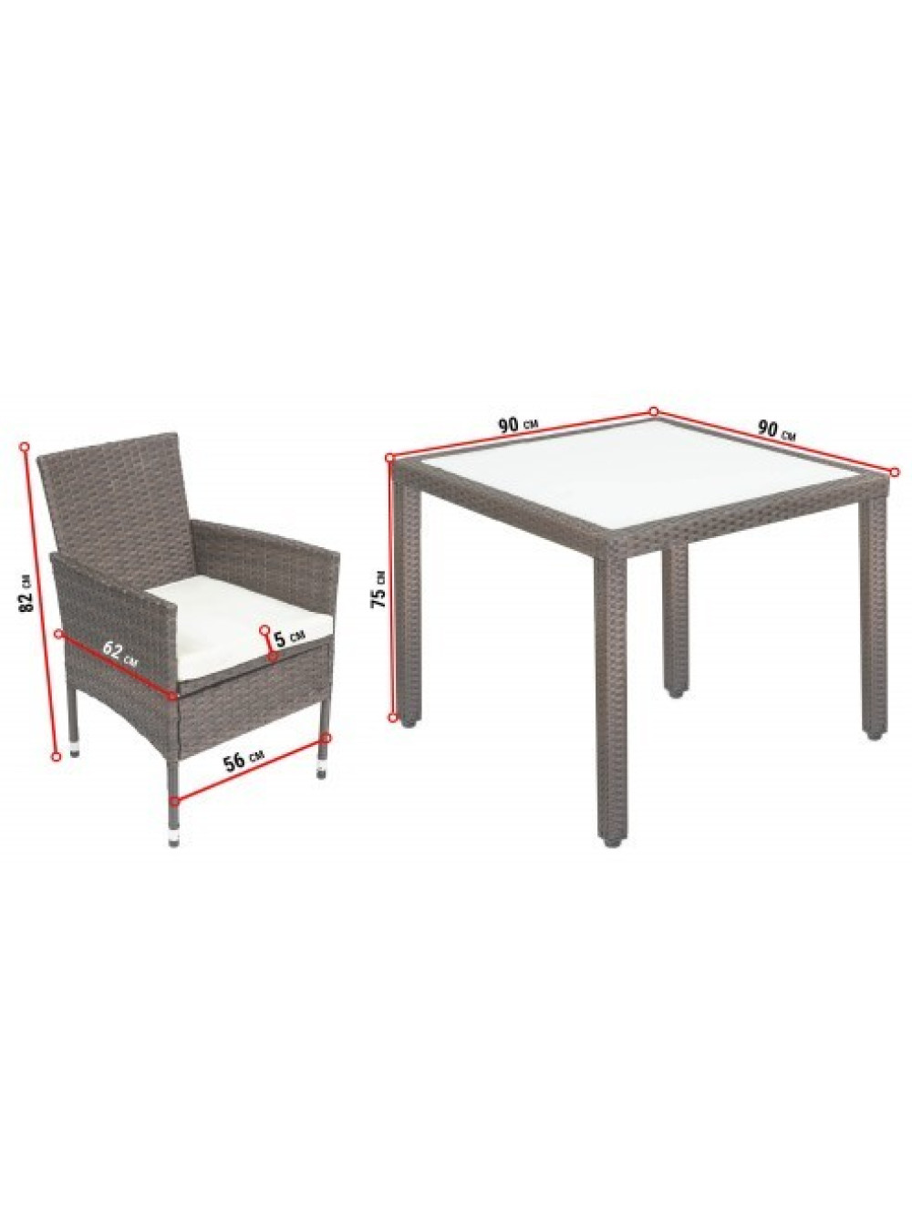 - Размеры стола: 90 х 90 х 75 см