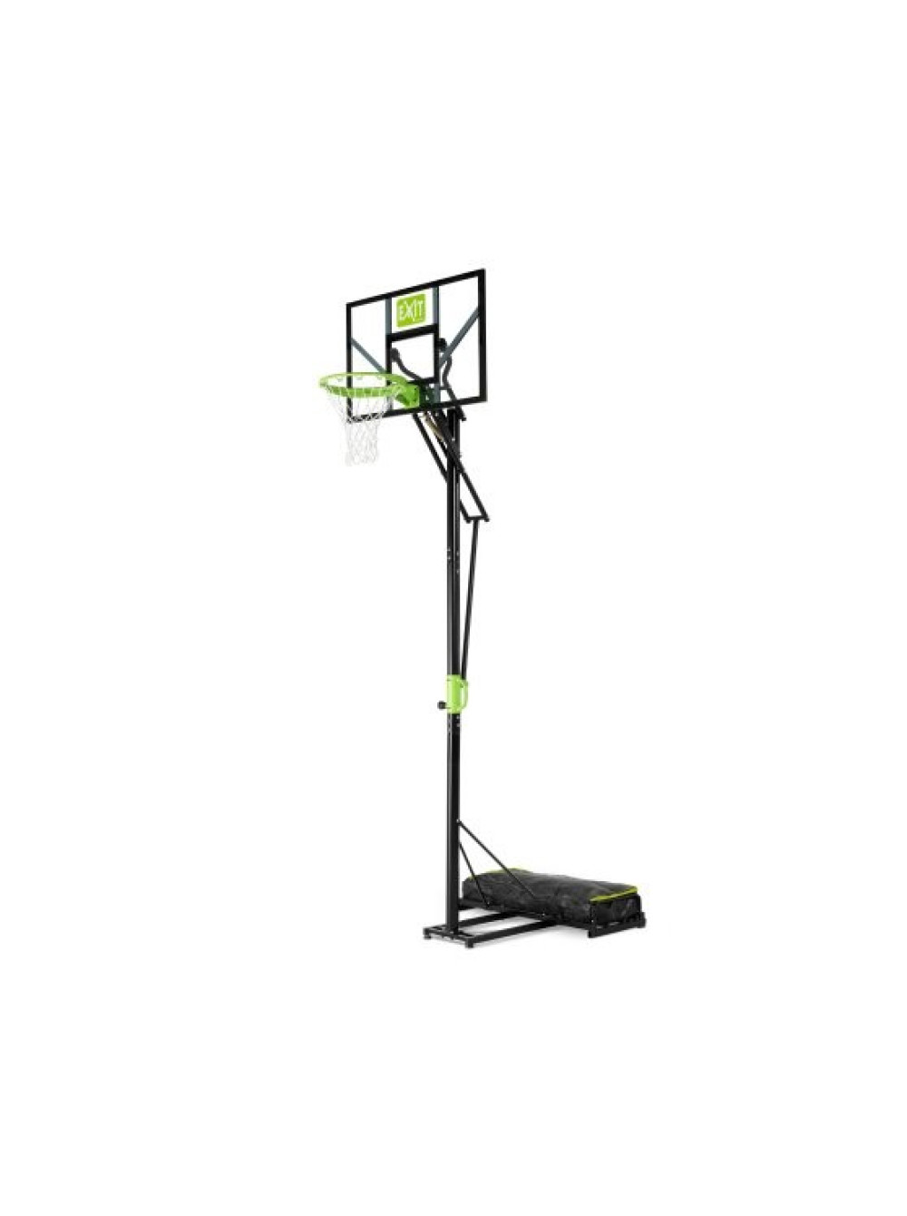 Передвижной баскетбольный щит Polestar EXIT green/black на колёсиках с зелёным кольцом гарантирует часы баскетбольного веселья.