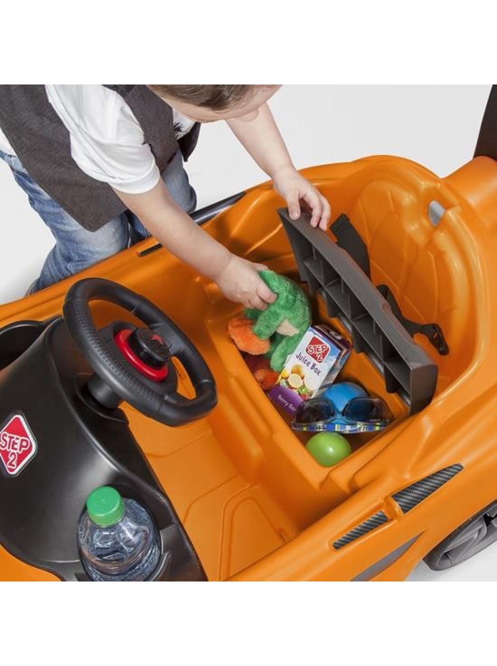 - оснащён двумя держателями для чашек и воды, а ручка для взрослых держателем для бутылок
