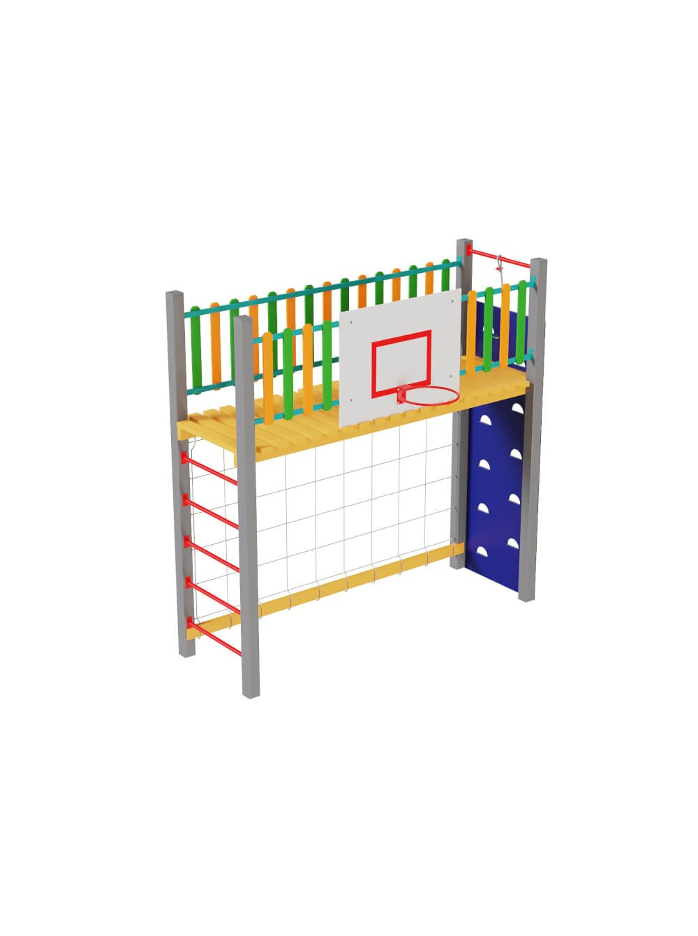 Спорткомплекс уличный Ты лучший отличается компактностью, эргономичностью и функциональностью. Модель выполнена из высококачественных материалов и состоит из таких элементов: платформа, стенка для скалолазания, футбольные ворота и баскетбольное кольцо. Спорткомплекс Ты лучший рассчитан на деток 12-17 лет.