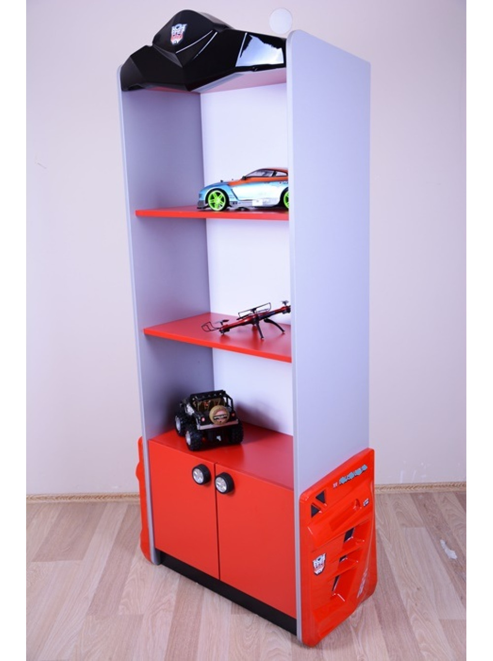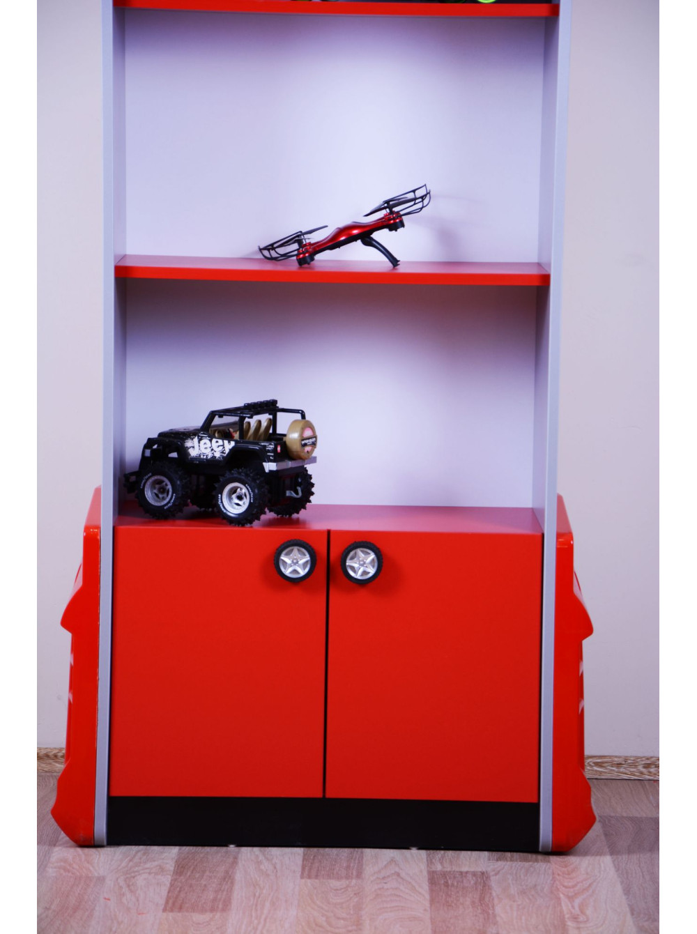 Книжкова шафа із серії Автомобільні пристрасті - стильне меблеве доповнення для будь-якої дитячої кімнати, де вже є ліжко-машина або ж ви тільки придивляєтеся до покупки подібної ліжка, вибираєте колір, розмір. функціональне наповнення. Такий книжкова шафа буде ідеальний в будь-яких поєднаннях подібних меблевих гарнітурів.