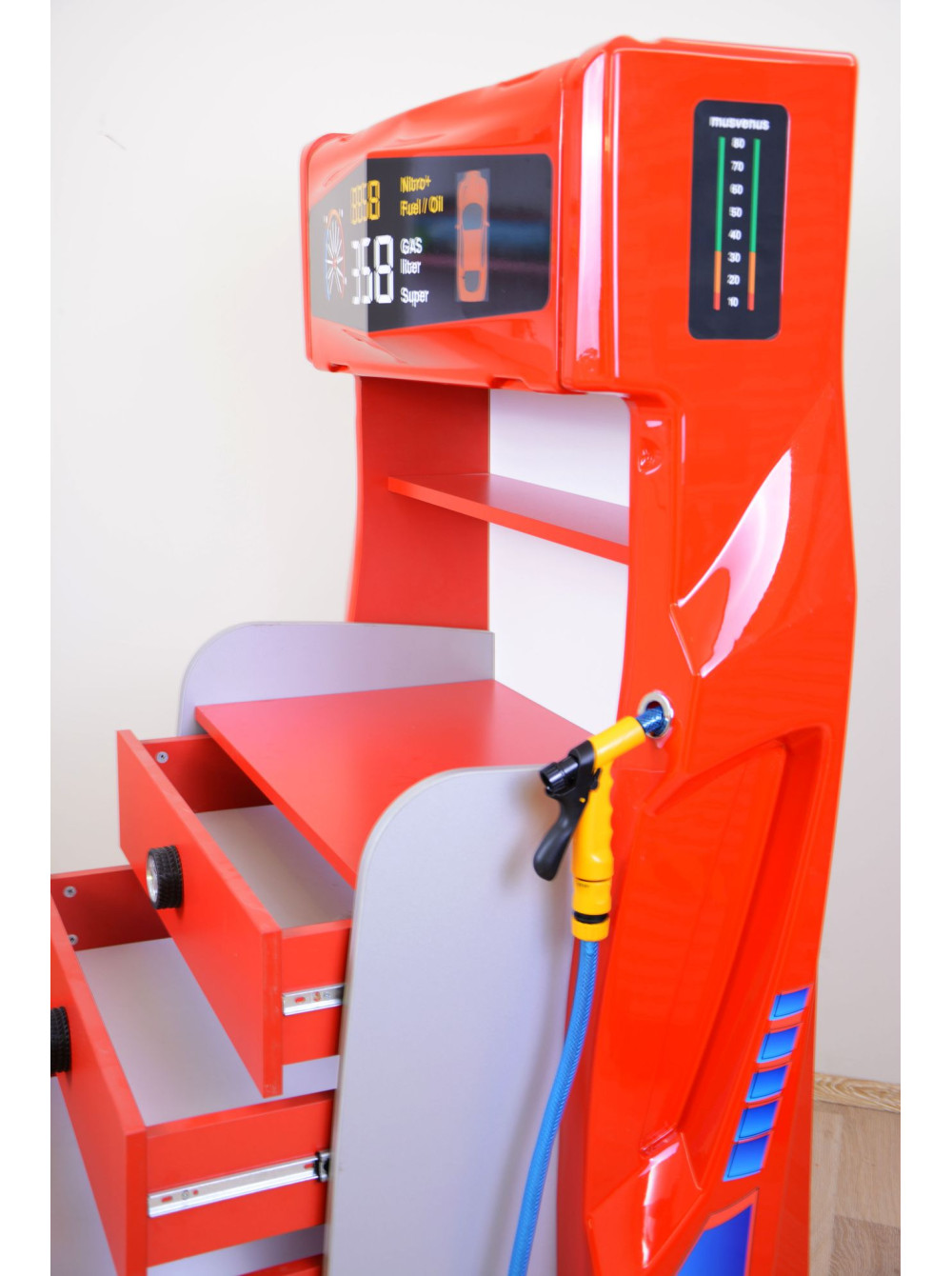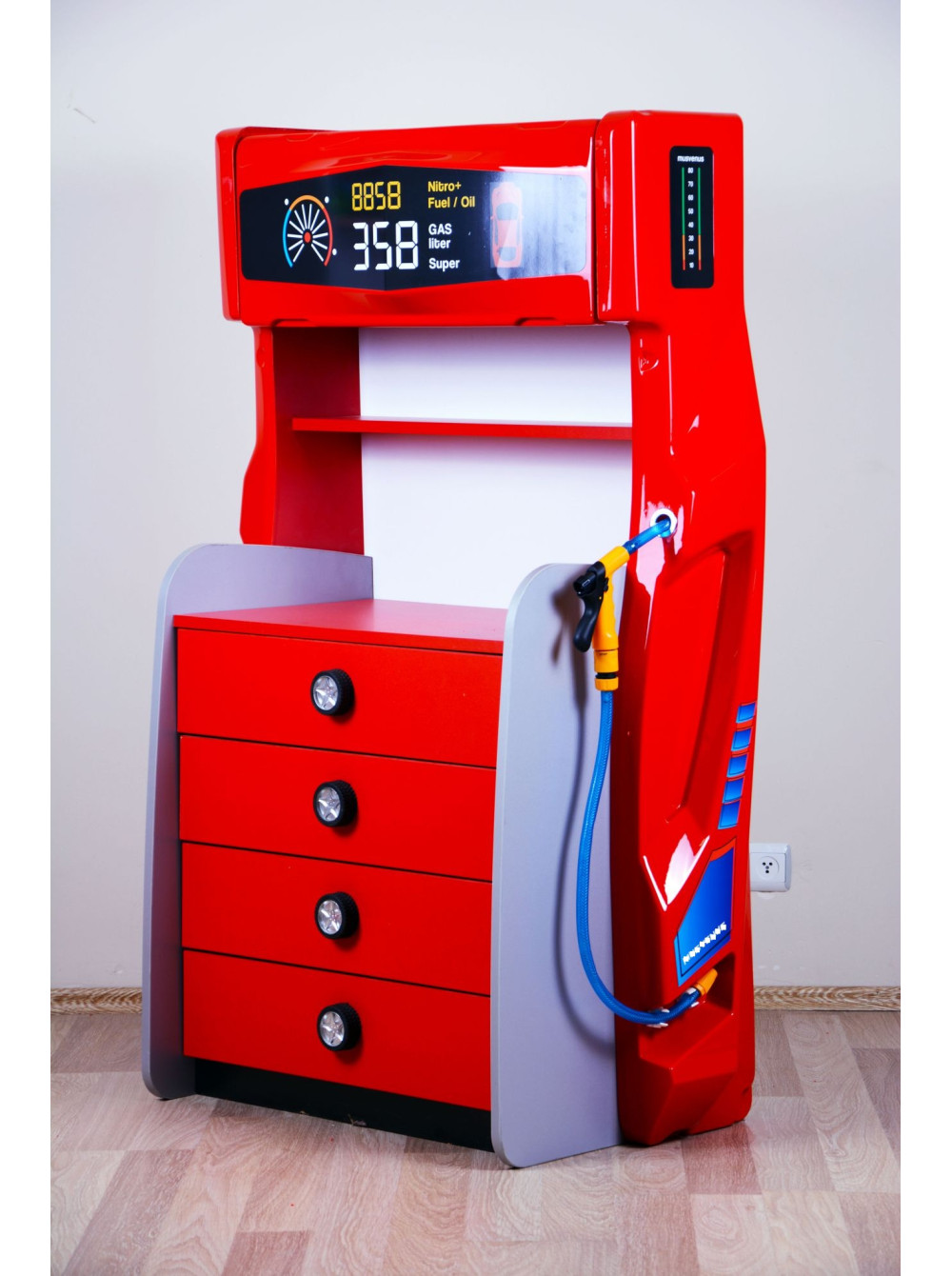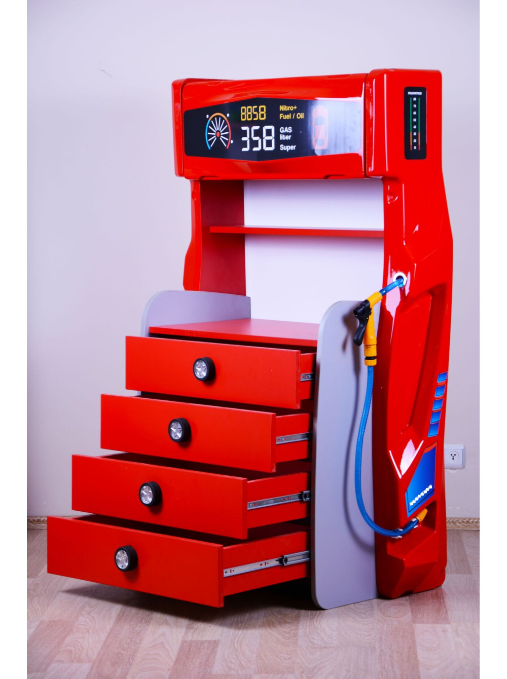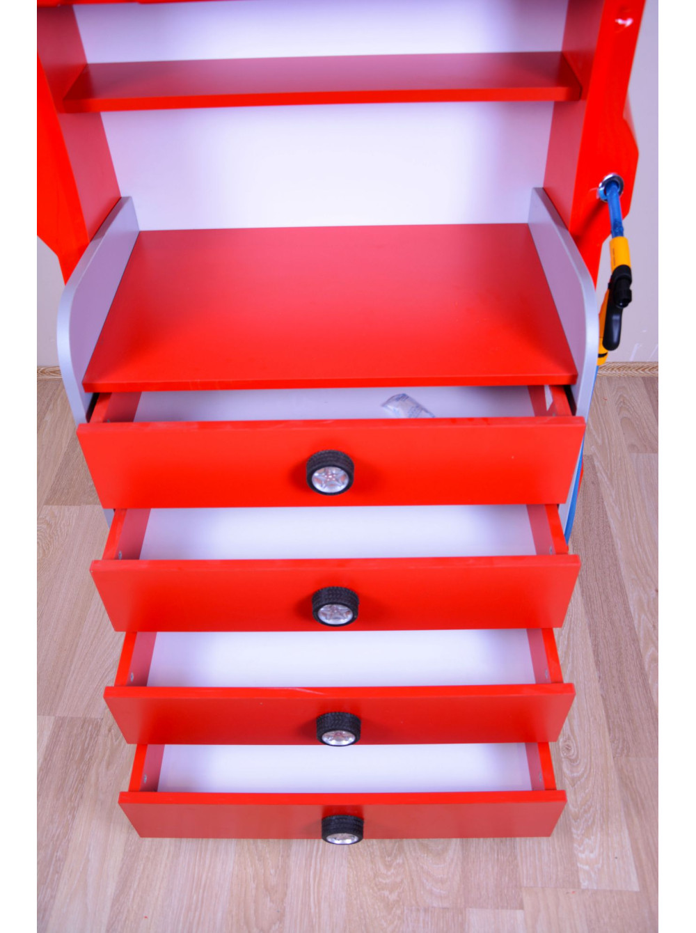 Комод з серії Автомобільні пристрасті - стильне меблеве доповнення для будь-якої дитячої кімнати, де вже є ліжко-машина або ж ви тільки придивляєтеся до покупки подібної ліжка, вибираєте колір, розмір. функціональне наповнення. Такий комод буде ідеальний в будь-яких поєднаннях подібних меблевих гарнітурів.
