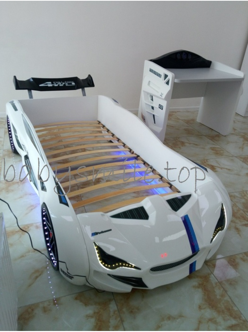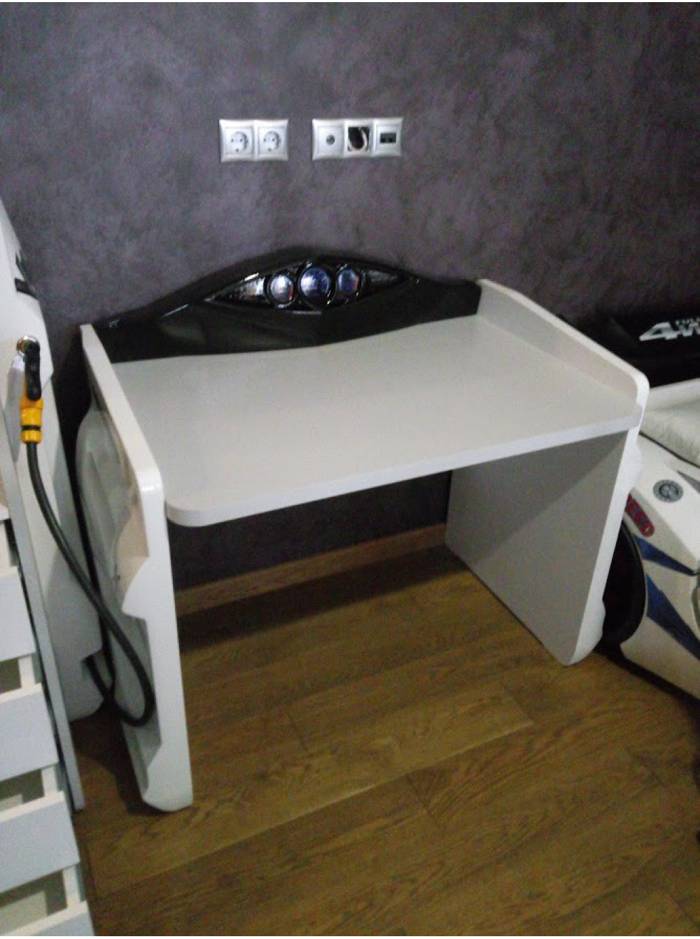 Стіл письмовий білий з серії Автомобільні пристрасті - стильне меблеве доповнення для будь-якої дитячої кімнати, де вже є ліжко-машина або ж ви тільки придивляєтеся до покупки подібної ліжка, вибираєте колір, розмір, функціональне наповнення. Такий стіл буде ідеальний в будь-яких поєднаннях подібних меблевих гарнітурів.