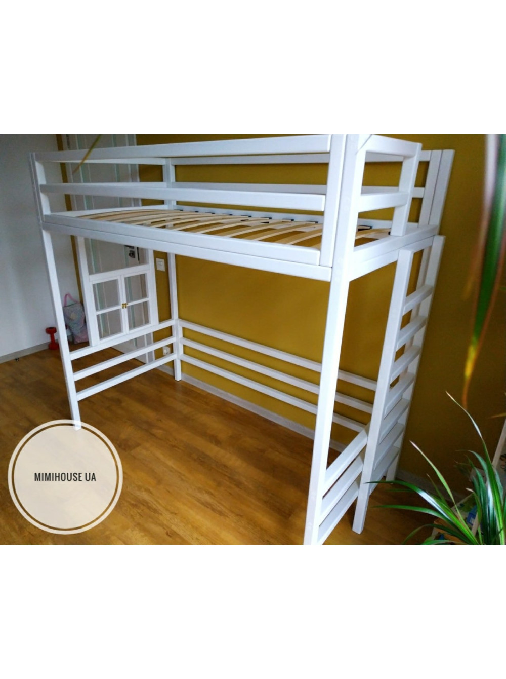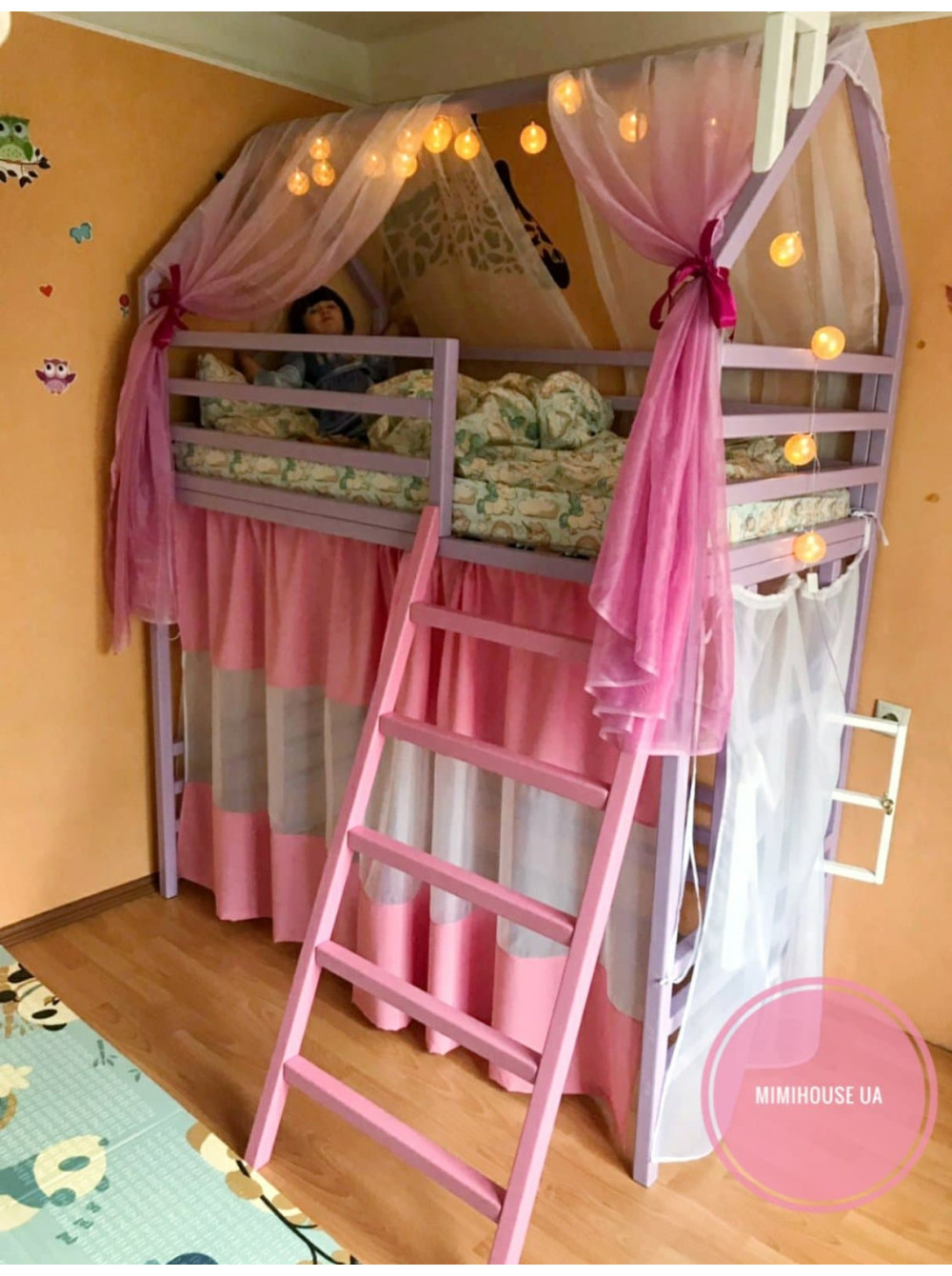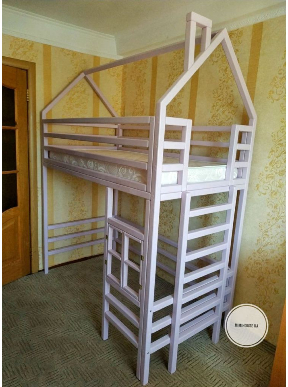Ліжко-горище оснащене перилами для додаткової безпеки, а до спального місця можна піднятися міцними сходами.