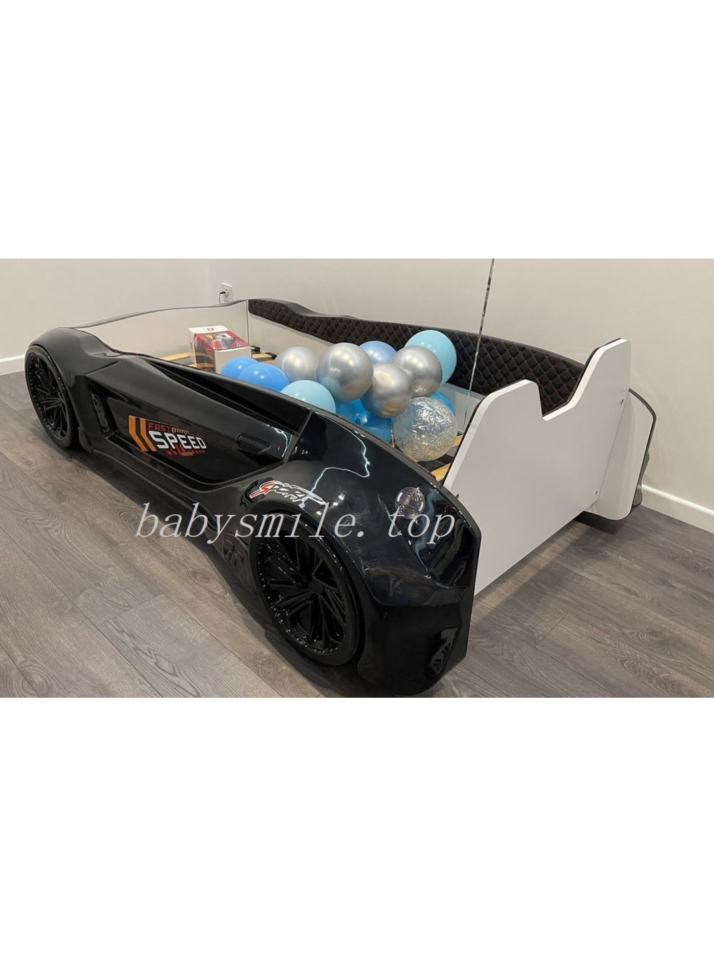 Салон ліжка машини з м'якими бортами усередині, оснащений двома високими спинками, обшитий Эко-шкірою по усьому периметру для більшого затишку і естетичного задоволення - загалом повна імітація справжнього автомобіля люкс класу. В той же час підсвічування може використовуватися як нічник в темний час доби. Ви можете управляти 4 різними звуковими і світловими функціями за допомогою пульта дистанційного керування.