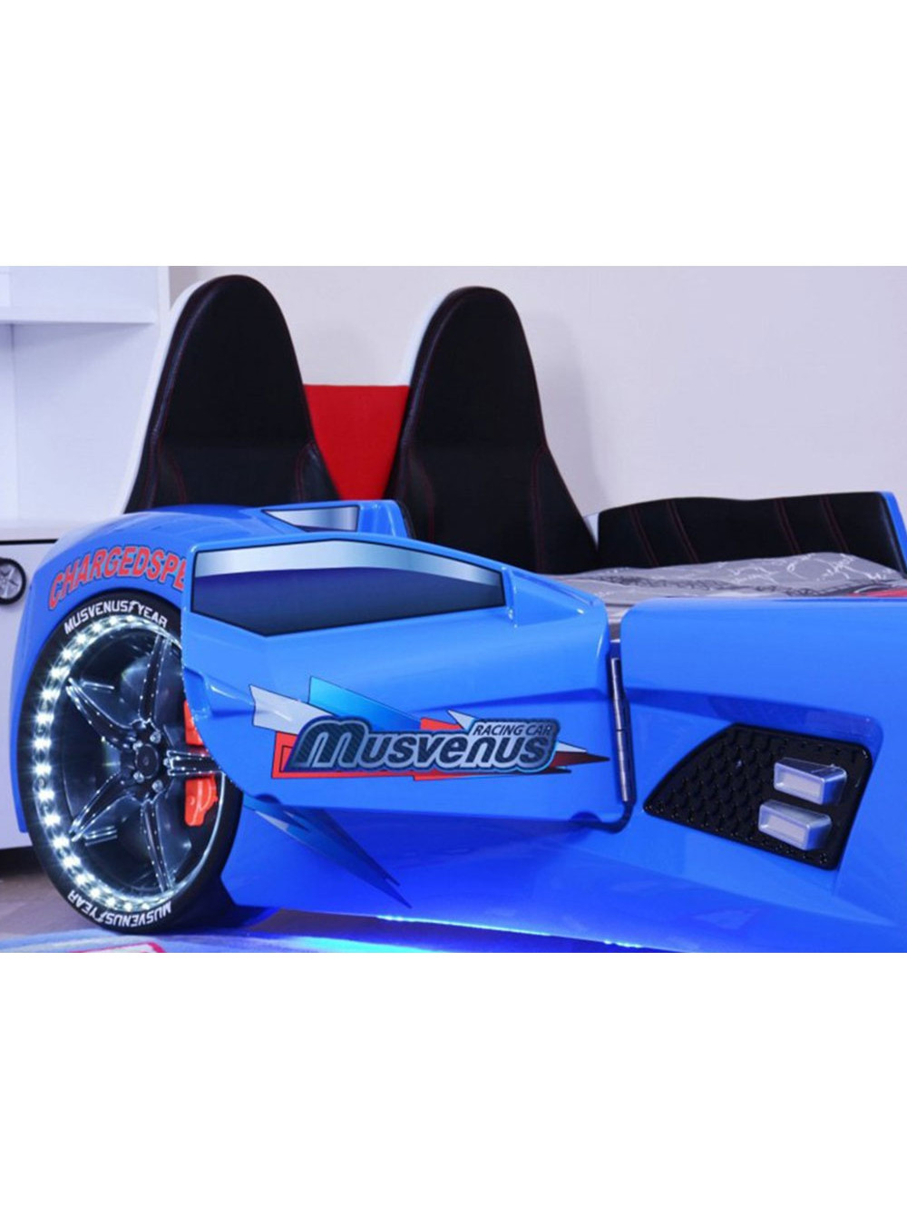 - Оснащене світлодіодним підсвічуванням фар, коліс і дна. Сяючі фари можна використовувати як нічник.