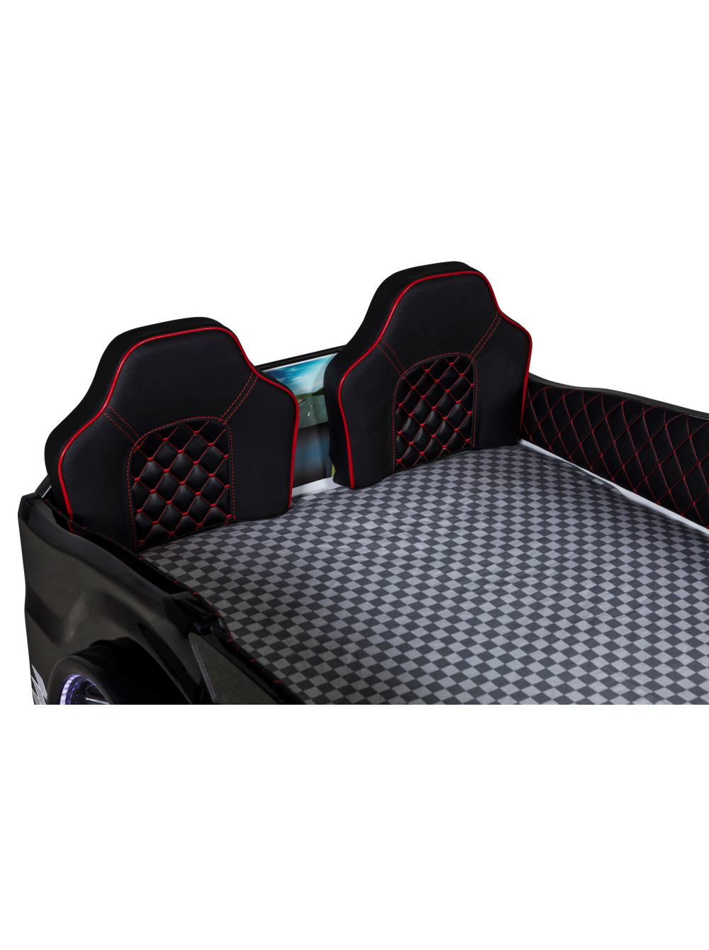 Бездоганне чорне ліжко автомобіль, завдяки своєму стилю і естетиці, явно виділяється серед усіх інших варіантів преміум сегменту. Основна особливість - це високі шкіряні спинки сидінь в узголів'я цього ліжка машини і двері, що дуже реально відкриваються. Вона напевно буде викликати захват і захоплення у Вашої дитини.