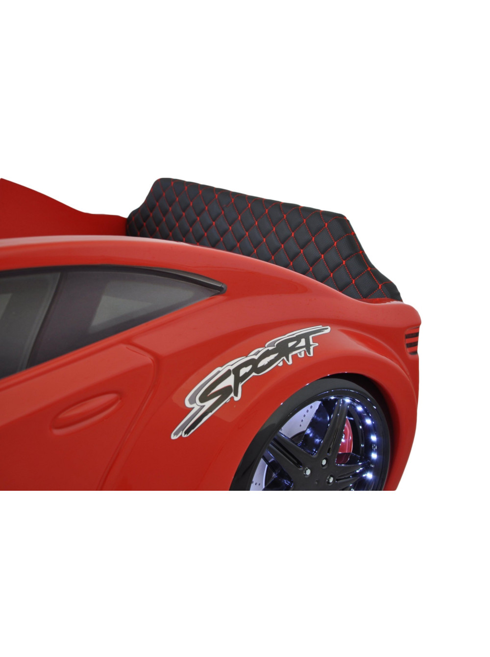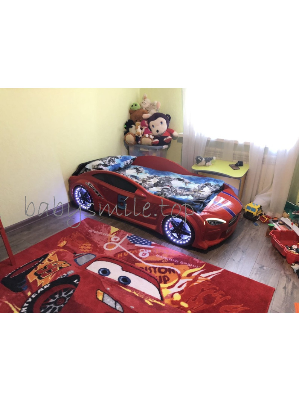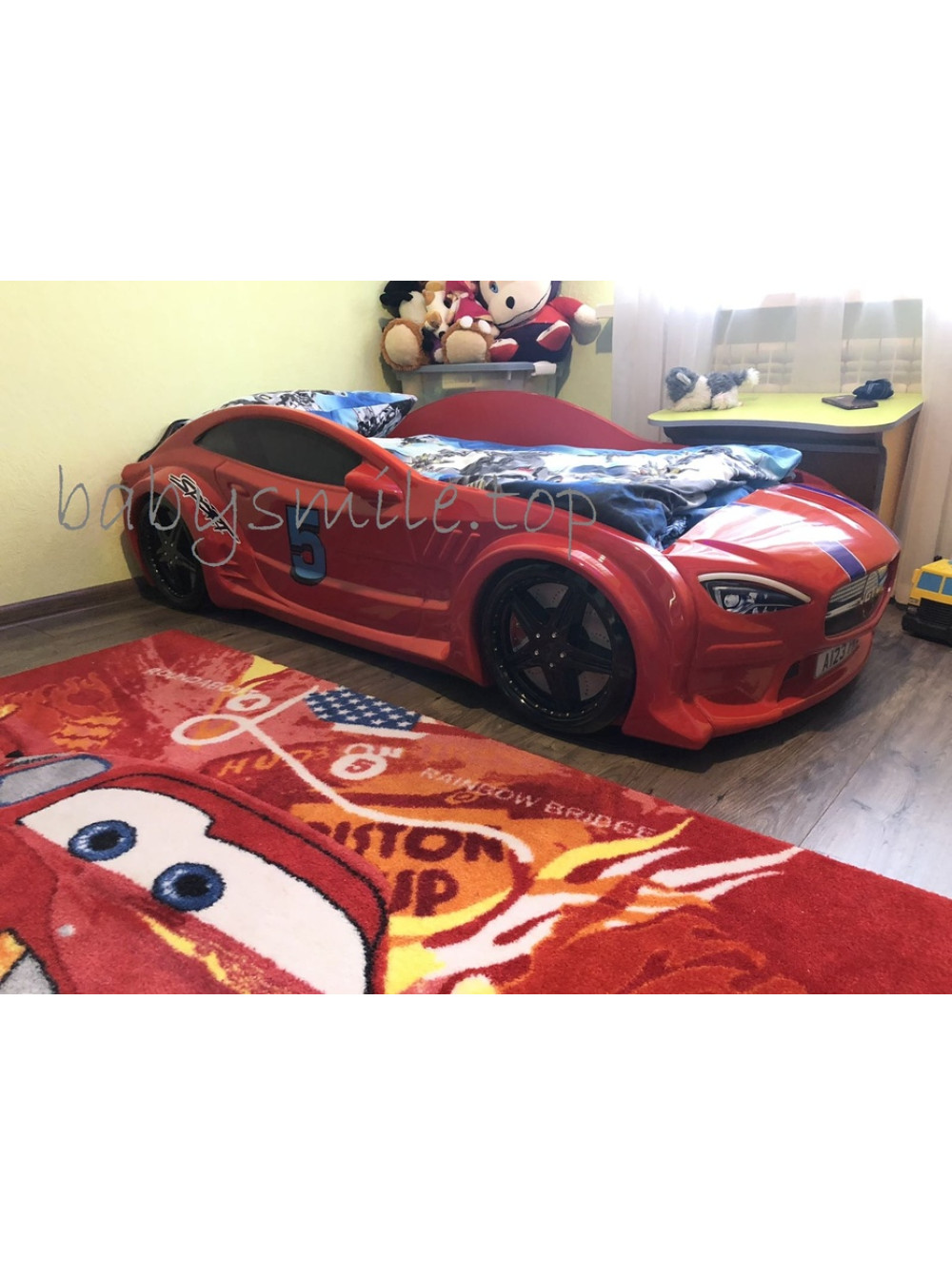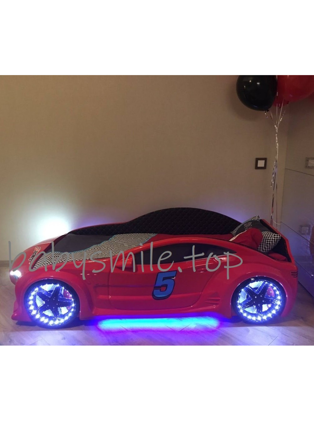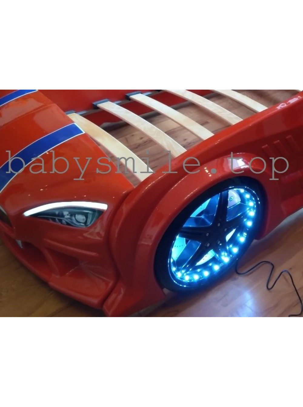Ліжко машина Mersedes GT 80х160 червона - нова модель ліжка авто з маленьким спальним місцем. Ідеальне рішення для маленьких діток і невеликих дитячих кімнат. Виконана в яскравому червоному кольорі з медичного пластика і ДСП, з низом кузова, що світиться, фарами, колесами і звуковими функціями (без ящика для зберігання).