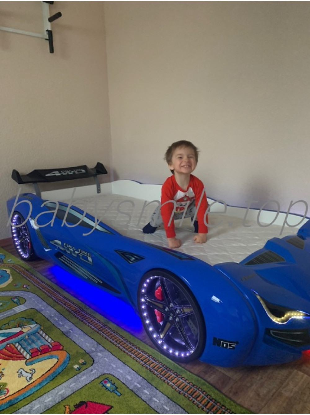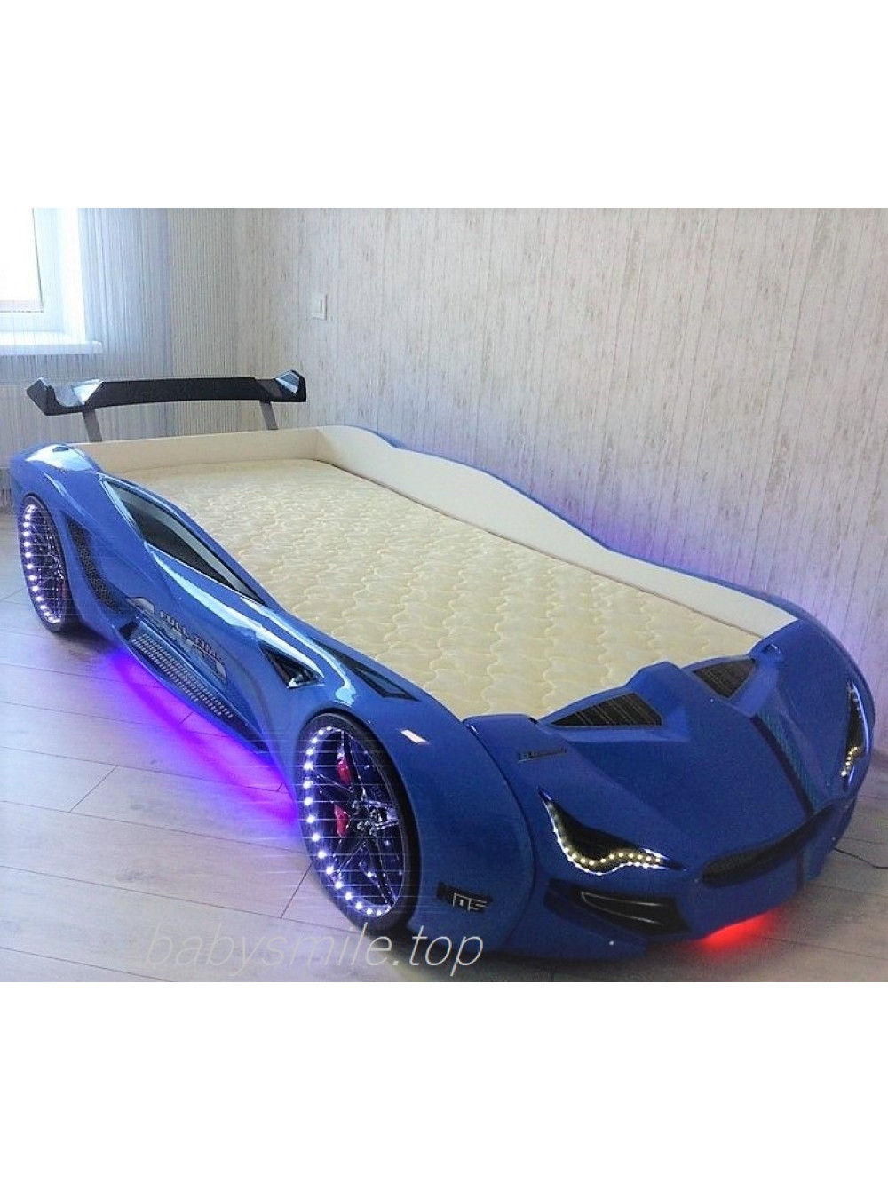 Найголовніше, що Ліжко машинка BMW синє має досить реалістичний вигляд не тільки зовні. Вона може видавати цілком реальні звуки мотора, що заводиться, і машини, що їде, до того ж підсвічування фар, коліс і дна завершують образ сучасного автомобіля. Таке підсвічування можна використовувати замість нічника, якщо ваша дитина боїться спати в повній темряві.