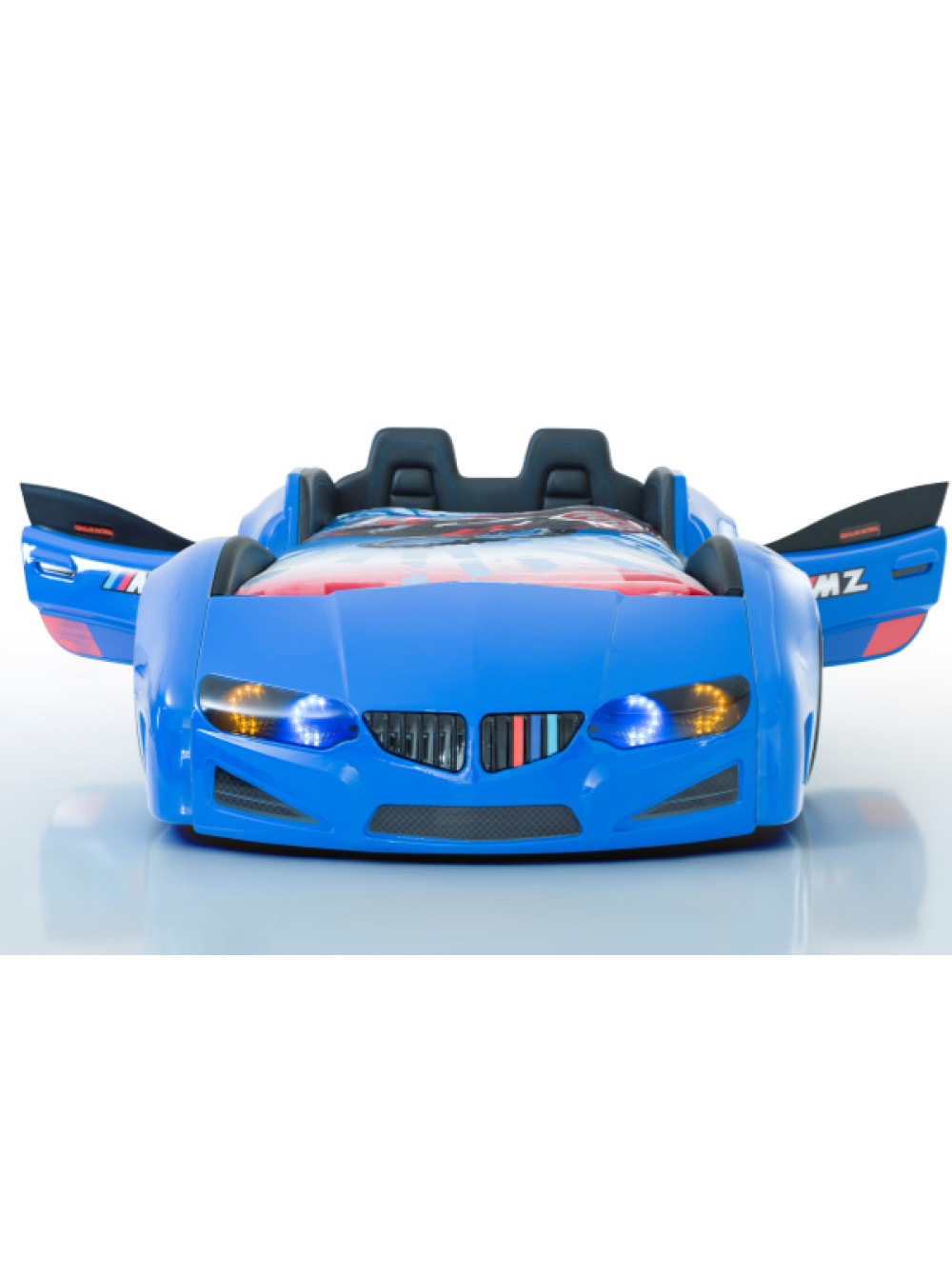 Ліжко машинка BMW VIP синя - елітна модель преміум класу, двері відкриваються, повне підсвічування і звукові ефекти, з медичного ABS- пластика