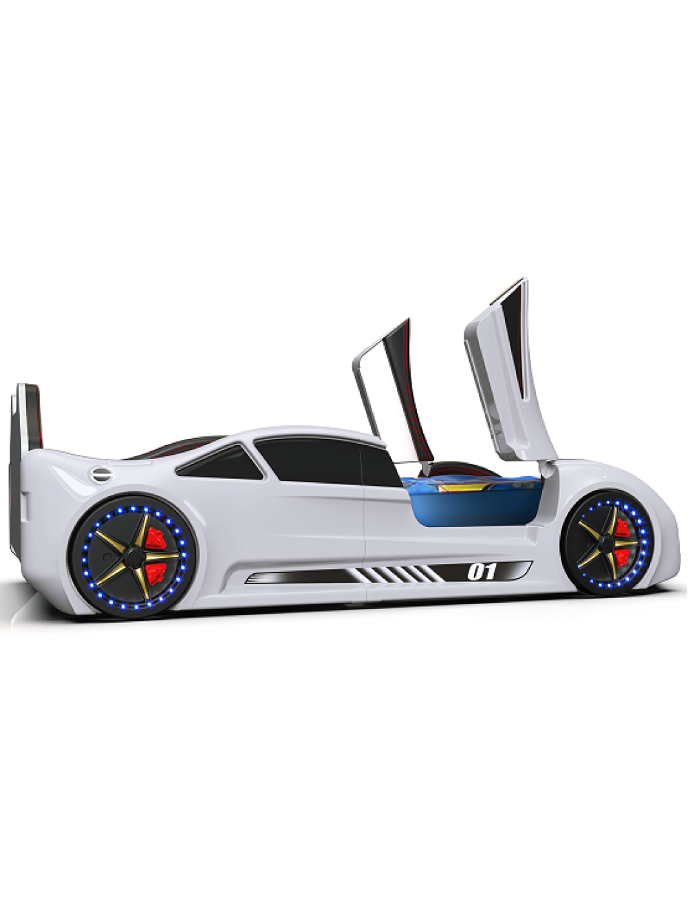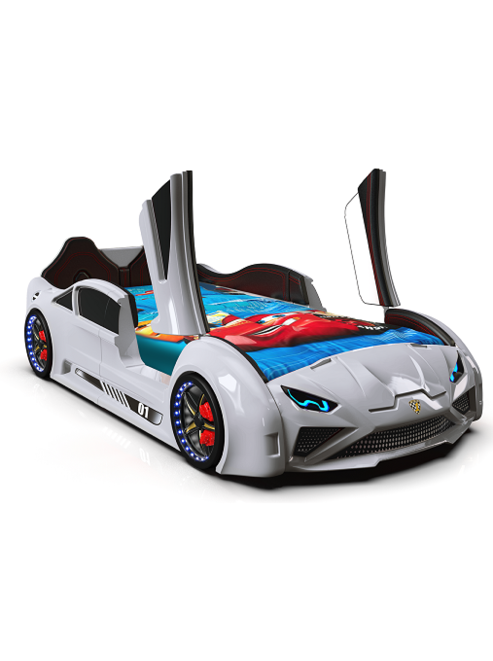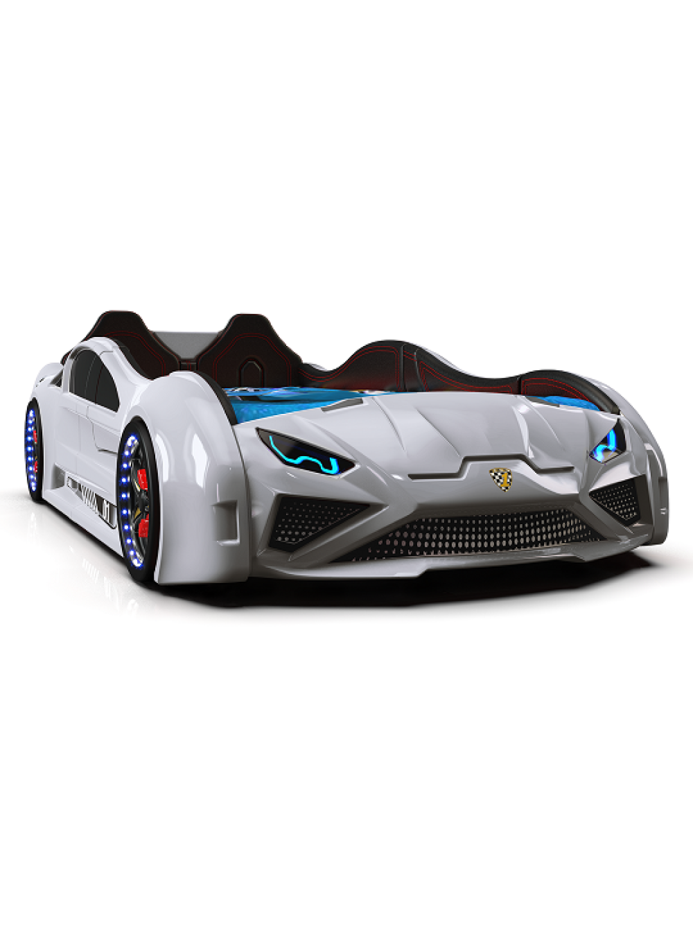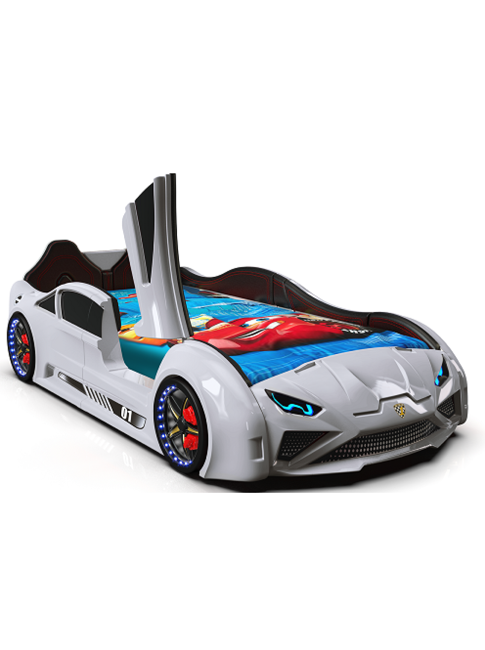 Ліжко машинка Lamborghini біла — шикарна модель преміум класу, двері відчиняються, повна підсвітка та звукові ефекти, з медичного ABS-пластику
