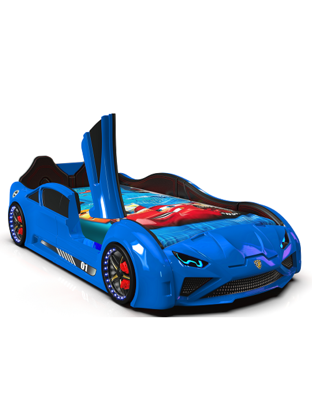 Ліжко машинка Lamborghini синя — шикарна модель преміум класу, двері відчиняються, повна підсвітка та звукові ефекти, з медичного ABS-пластику