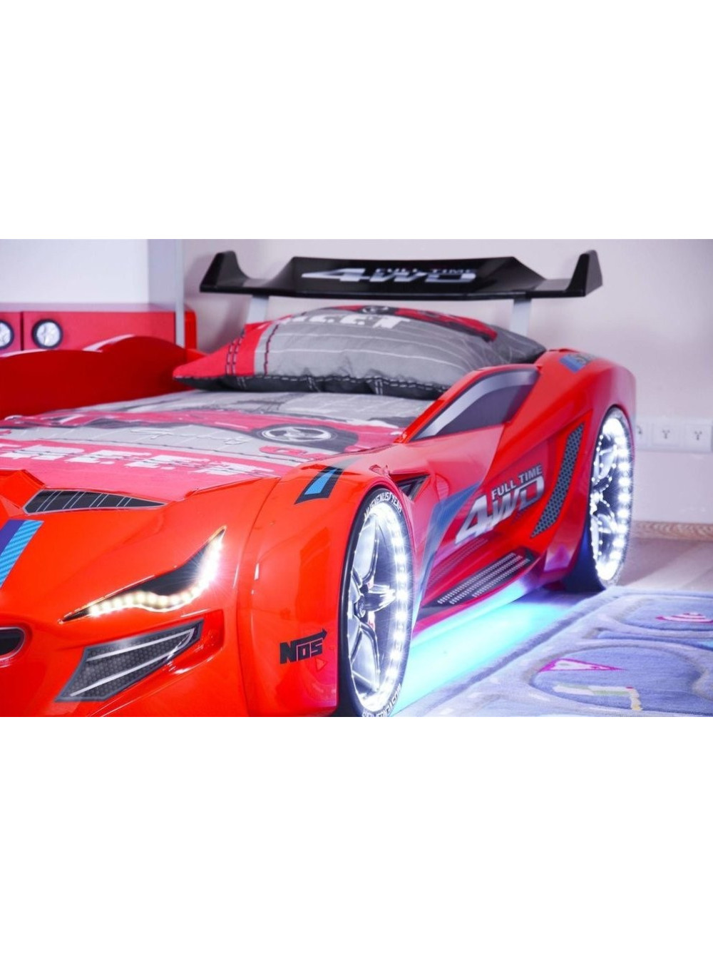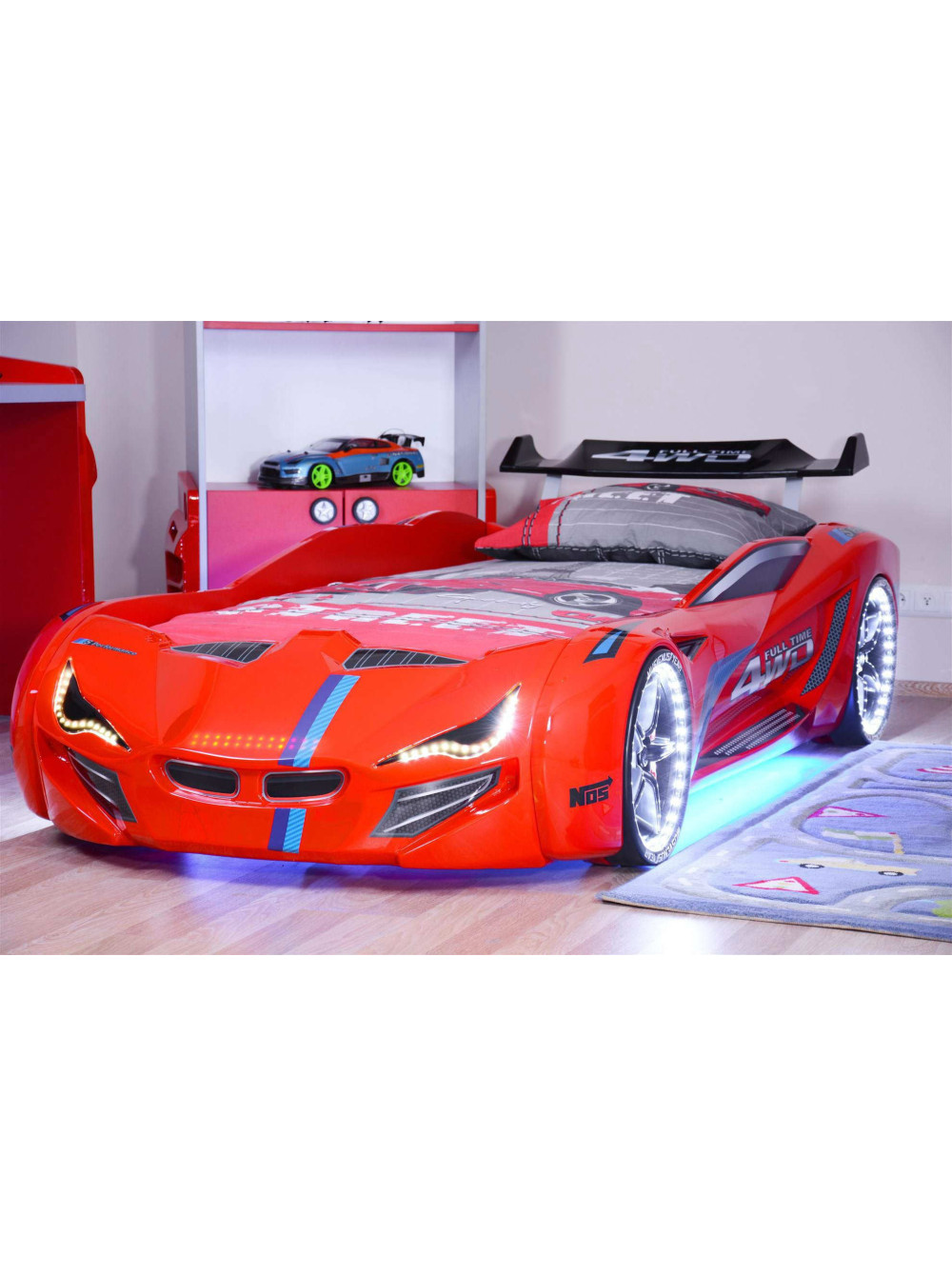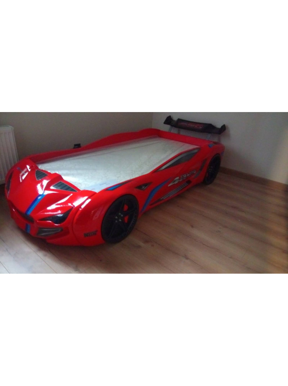 Найголовніше, що Ліжко у вигляді машини BMW червоне виглядає реалістично не тільки зовні. Вона може видавати цілком реальні звуки мотора, що заводиться, і машини, що їде, до того ж підсвічування фар, коліс і дна завершують образ сучасного автомобіля. Таке підсвічування можна використовувати замість нічника, якщо ваша дитина боїться спати в повній темряві.