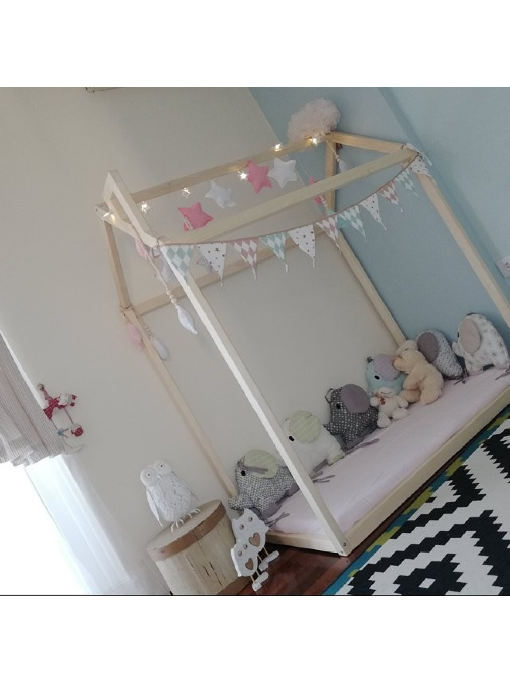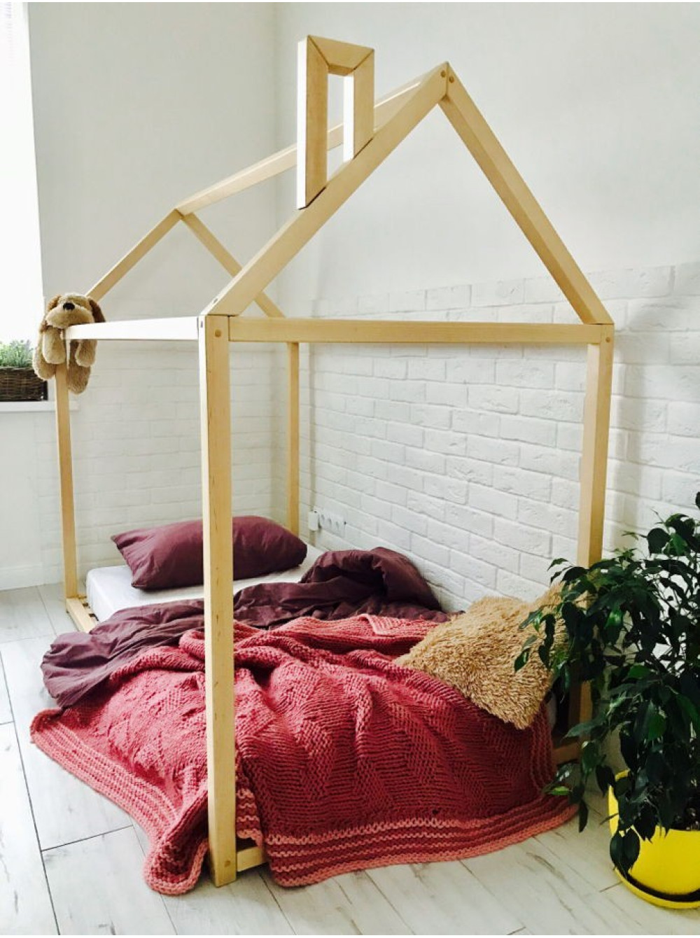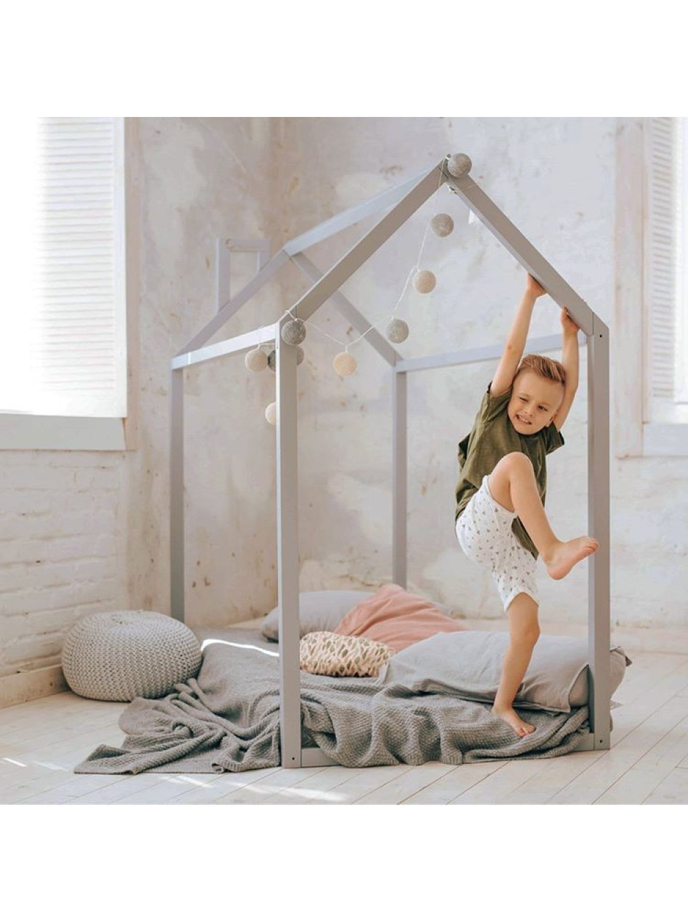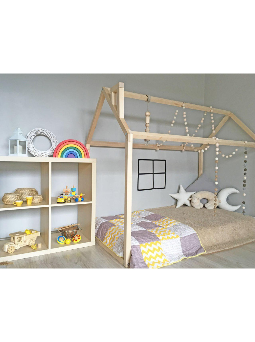 Ліжко-будиночок Підлогове робиться без ніжок і у всьому світі має загальну назву ліжко Монтессори. Якщо хочете купити ліжко для дітей від одного року, зверніть увагу на цей варіант. Тим паче, що висоту ліжка ви можете регулювати самостійно і на ціну це абсолютно ніяк не вплине.