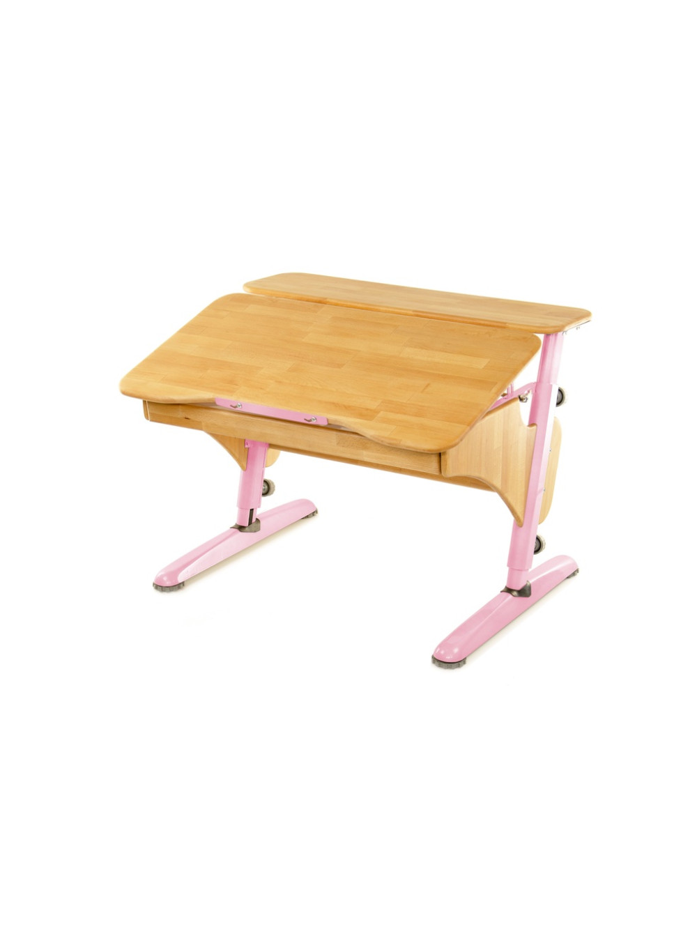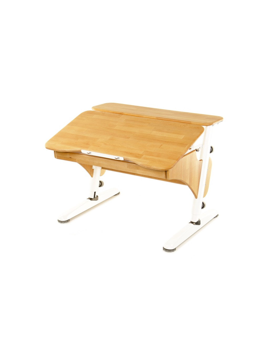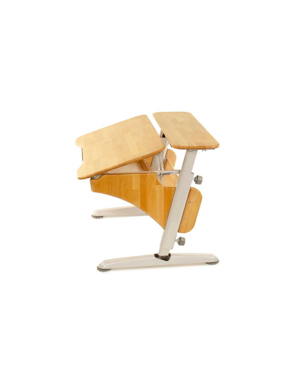 Стільниця може змінювати кут нахилу від горизонтального положення до тридцяти градусів. Для комфорту і безпеки дитини передбачений механізм плавного підйому. Також конструкція доповнена висувним ящиком для шкільного приладдя та додатковою полицею.