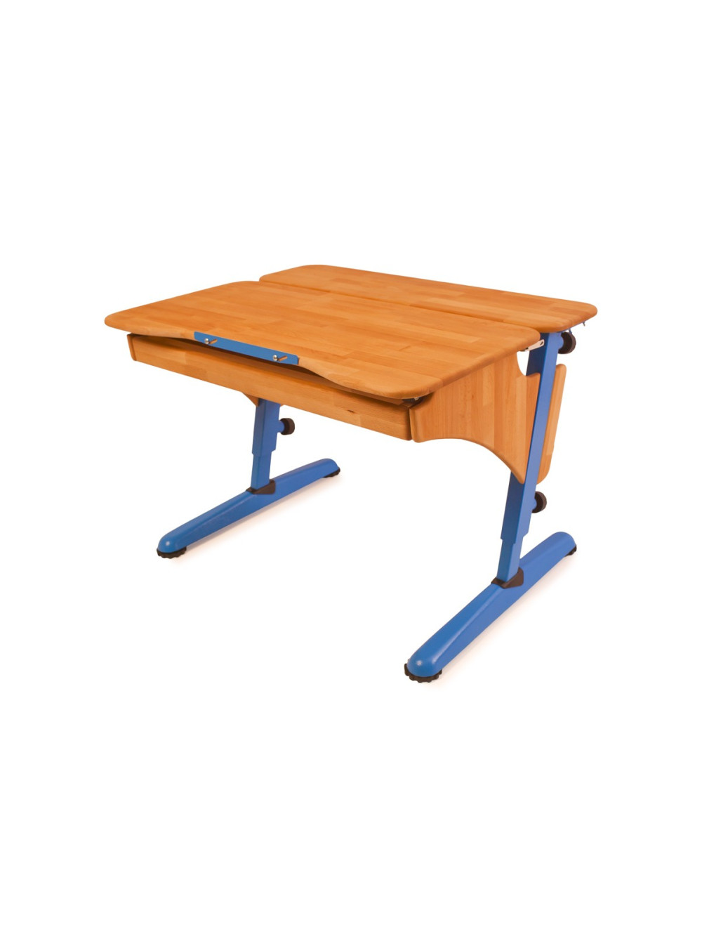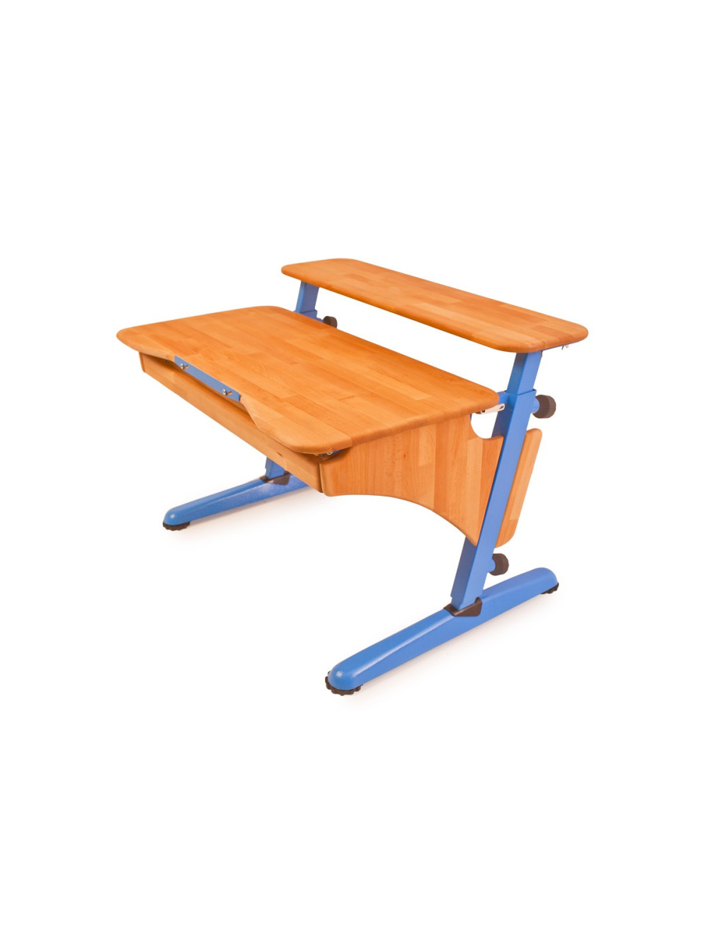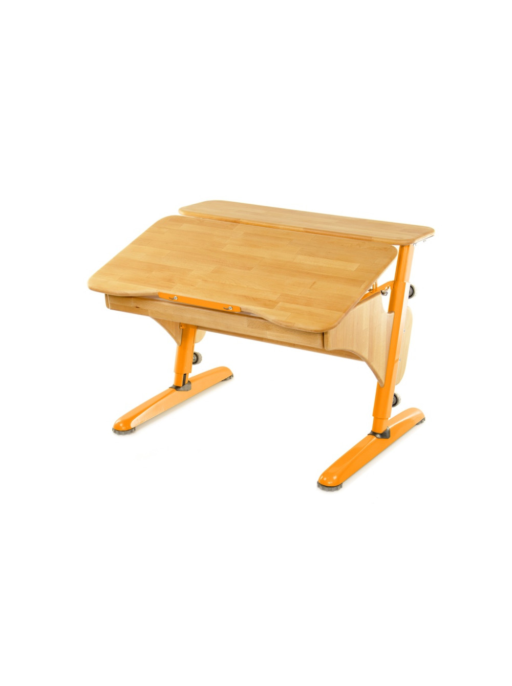 Стільниця може змінювати кут нахилу від горизонтального положення до тридцяти градусів. Для комфорту і безпеки дитини передбачений механізм плавного підйому. Також конструкція доповнена висувним ящиком для шкільного приладдя та додатковою полицею.