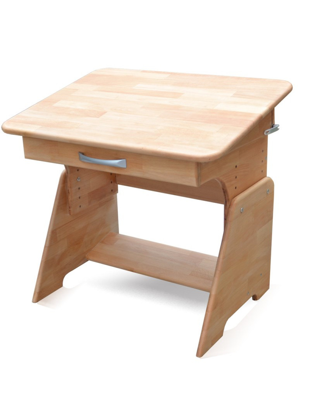 До того ж має ряд переваг для комфорту дитини : сім положень регульованої висоти, від 46 до 64 см, підставка для ніг, наявність якої посприяє формуванню правильної постави, п'ять положень кута нахилу стільниці, що при роботі з книгами або при виконанні домашніх завдань допоможе зберегти зір і здорову спину. Стіл доповнений містким висувним пеналом для предметів шкільної канцелярії.