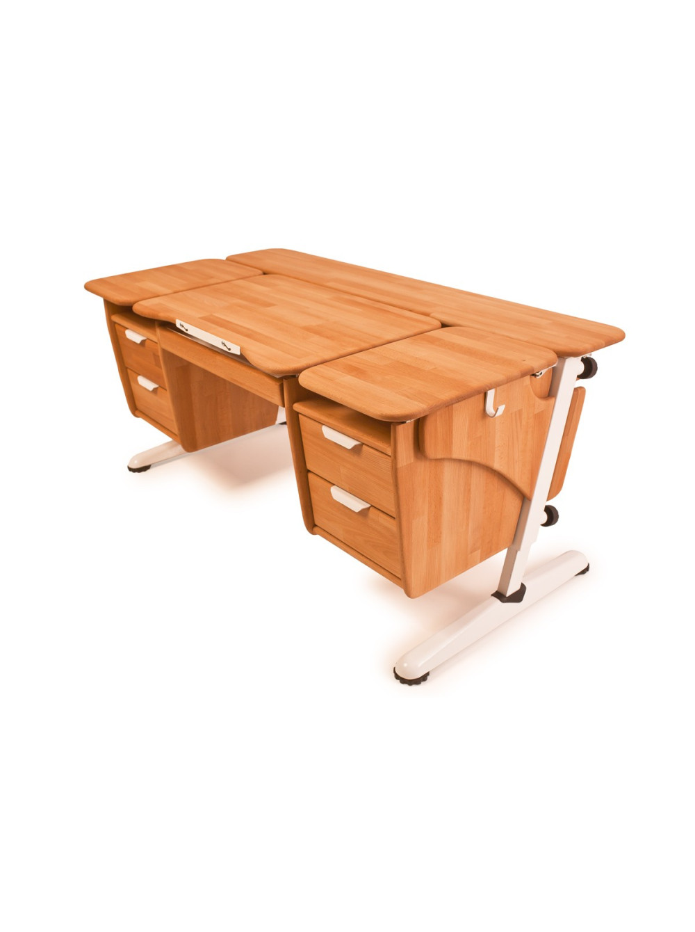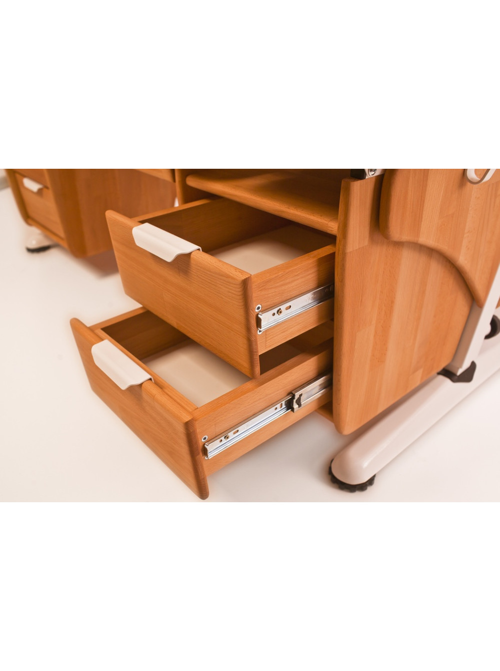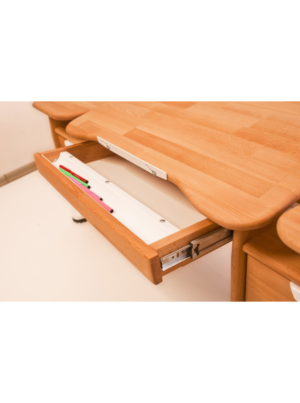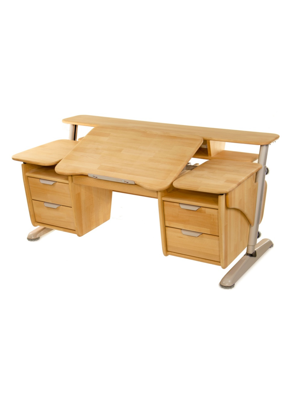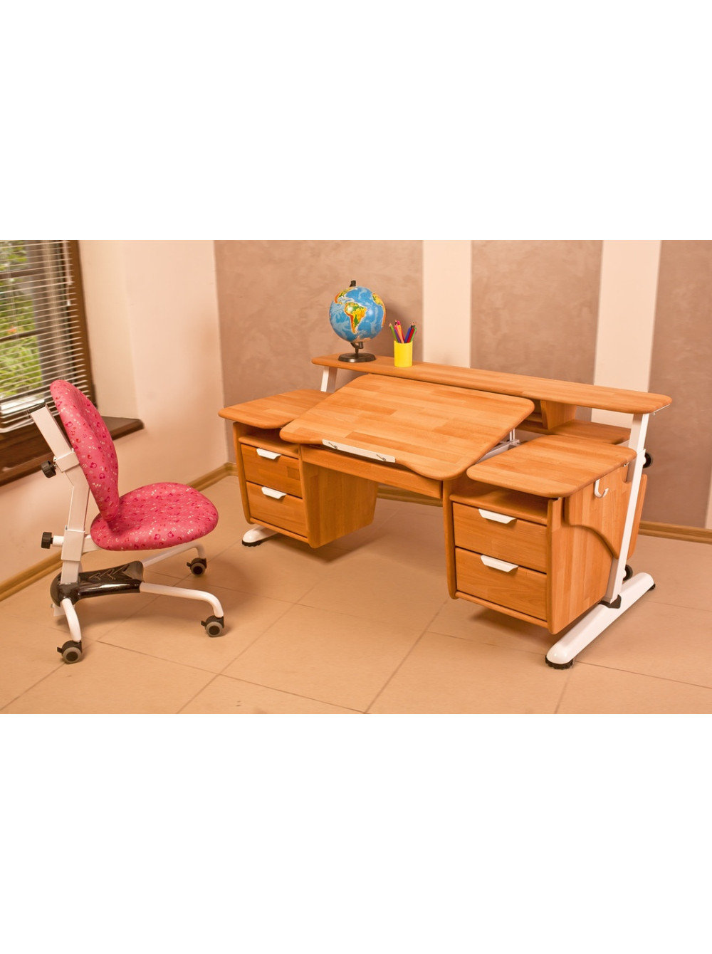 Парта трансформер з двома тумбами Ергономіка бук - виріб зі стильним і красивим дизайном, відмінної якості і максимально місткими можливостями завдяки кільком тумбам в комплекті. Добре продумана і зручна модель з роздільною стільницею і регульованою задньою полицею. Ви самостійно і без особливих зусиль в будь-який зручний для Вас час зможете відрегулювати висоту парти у відповідності із зростанням учня від 110 см до 178 див.