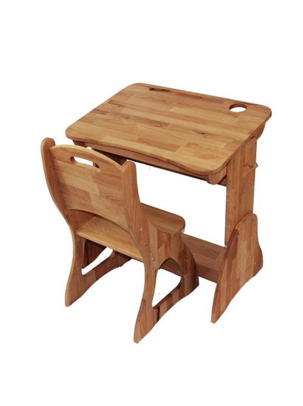 На стільниці є отвори для канцелярського приладдя (ручок і олівців).