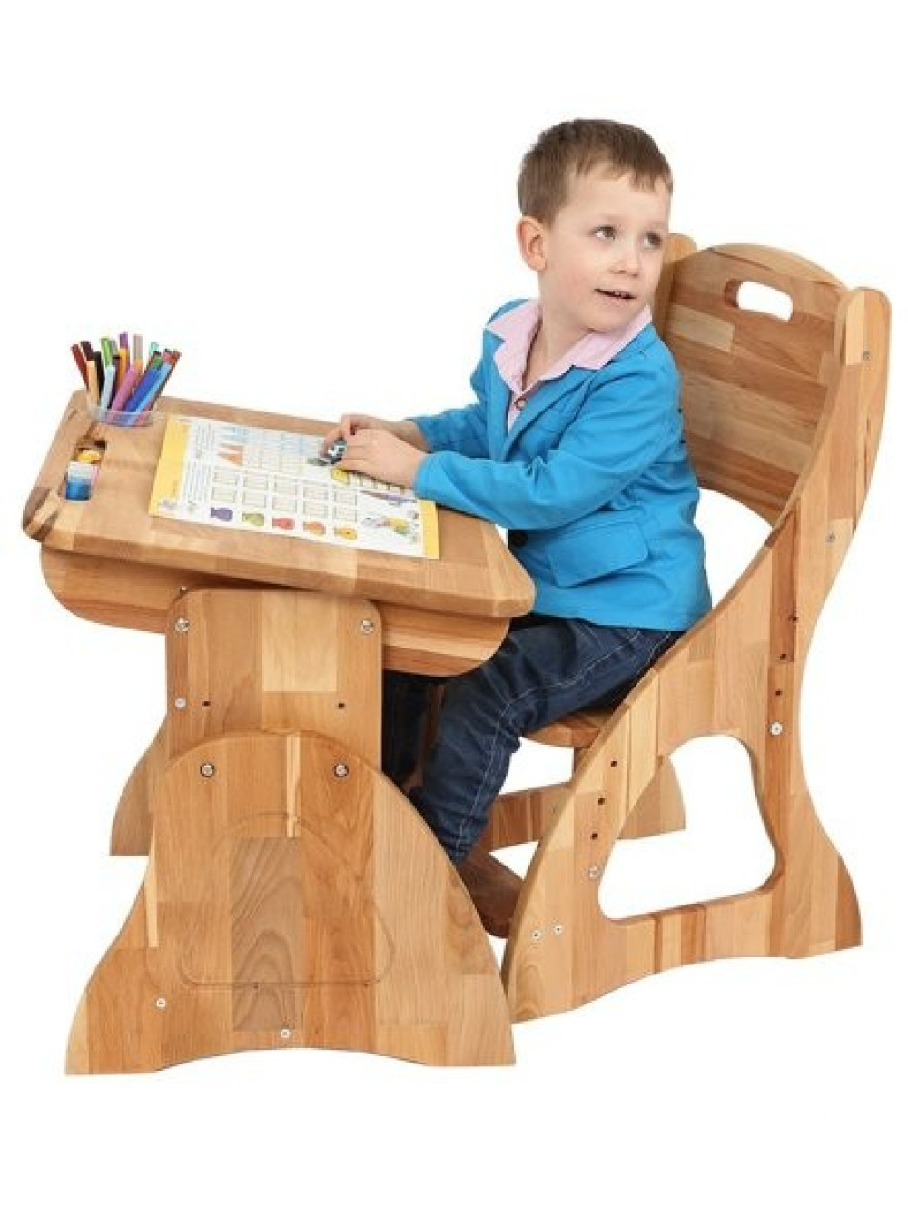 Дитяча парта зростаюча з ящиком бук, виконана з якісного натурального дерева, з урахуванням усіх ортопедичних особливостей дитини, що росте, розвивається і досить тривалий час проводить сидячи за нею. Сидіти і навчатися за такою партою буде комфортно і зручно в будь-якому віці, так як парта регулюється по висоті в чотирьох рівнях відповідно зростанню: з 115 до 130 см, до 145 см, з 145 до 160 см і з 160 до 175 см.