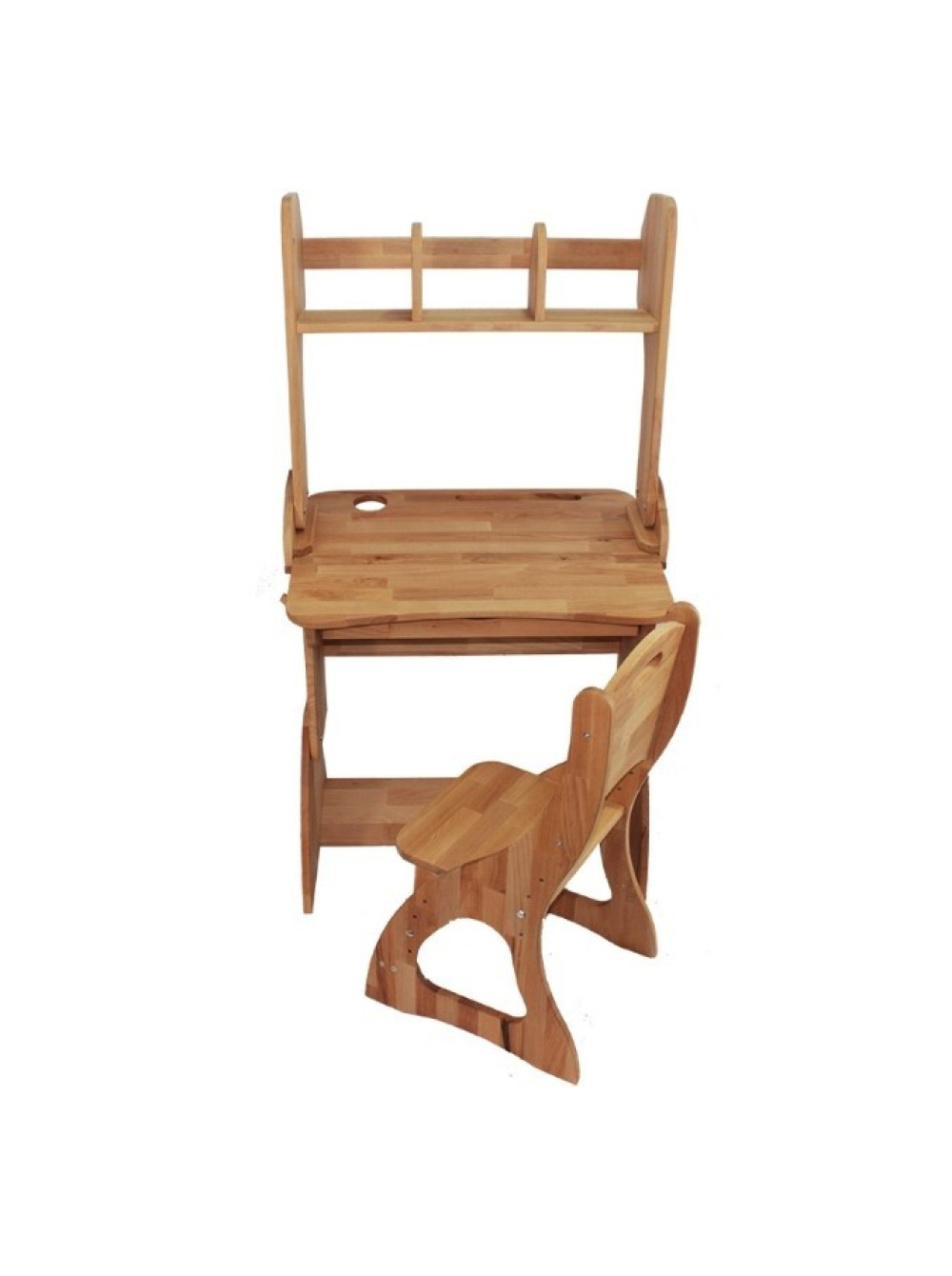 Вироби виконані з якісного натурального дерева, з урахуванням усіх ортопедичних особливостей дитини, що росте, розвивається і досить тривалий час проводить сидячи за нею. Сидіти і навчатися за такою партою буде комфортно і зручно в будь-якому віці, так як парта регулюється по висоті в чотирьох рівнях відповідно зростанню: з 115 до 130 см, до 145 см, з 145 до 160 см і з 160 до 175 см.