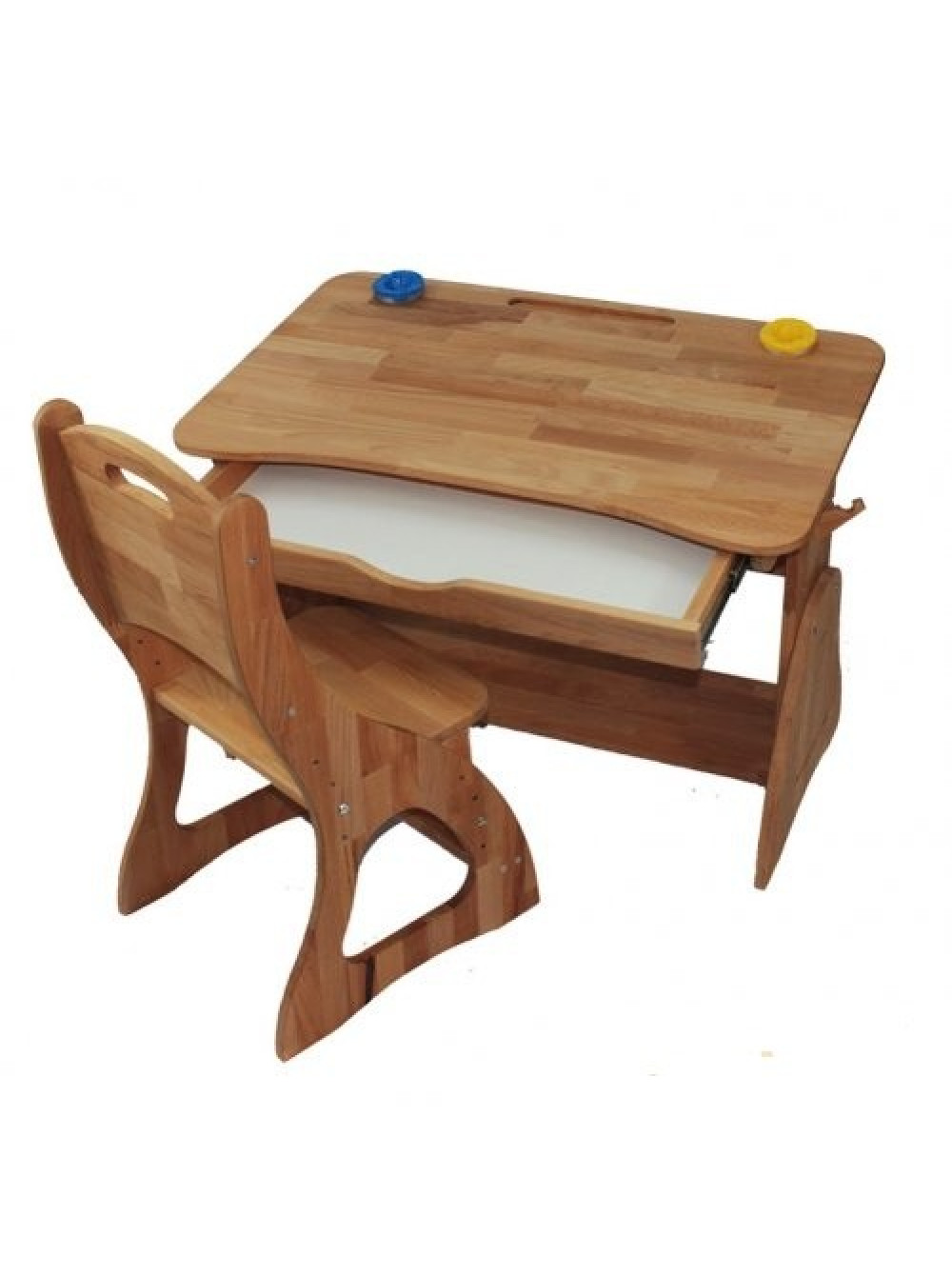 На стільниці є поглиблення для канцелярського приладдя (ручок і олівців) і отвір для склянки.