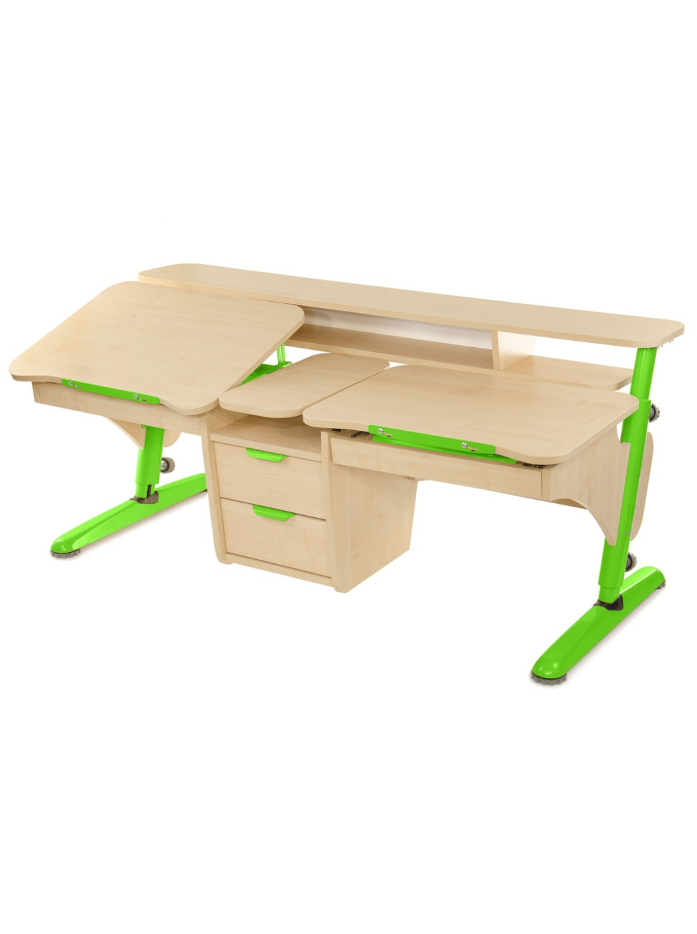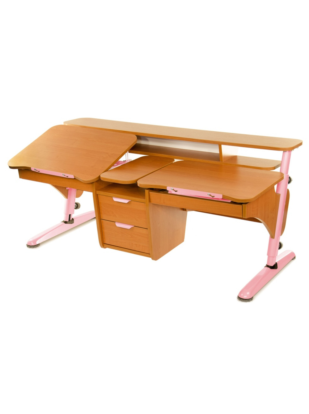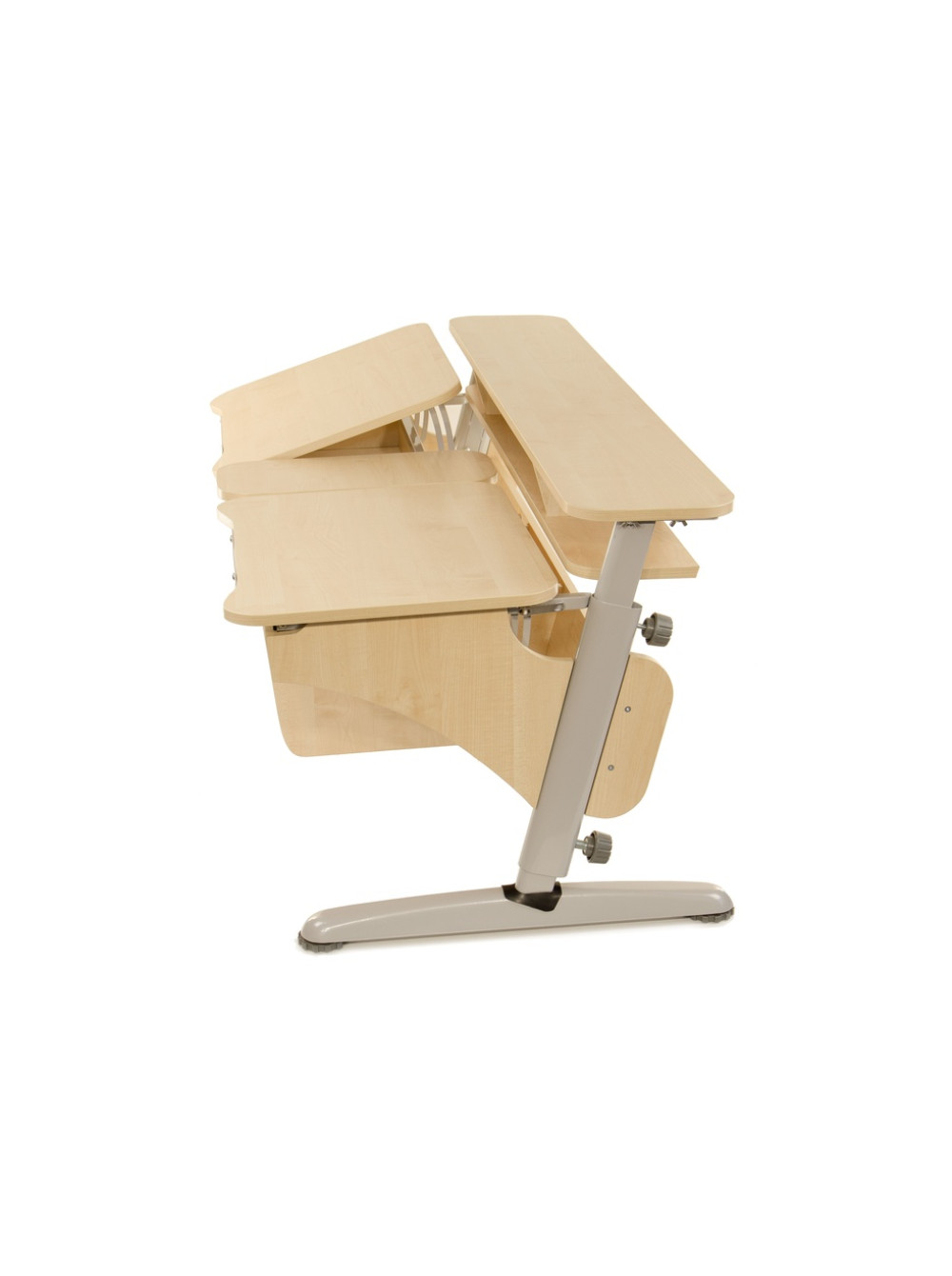 Висота може бути однакова для двох робітників місць, але при цьому кожна дитина зможе виставити зручний кут нахилу стільниці для себе від горизонтального положення до тридцять градус.