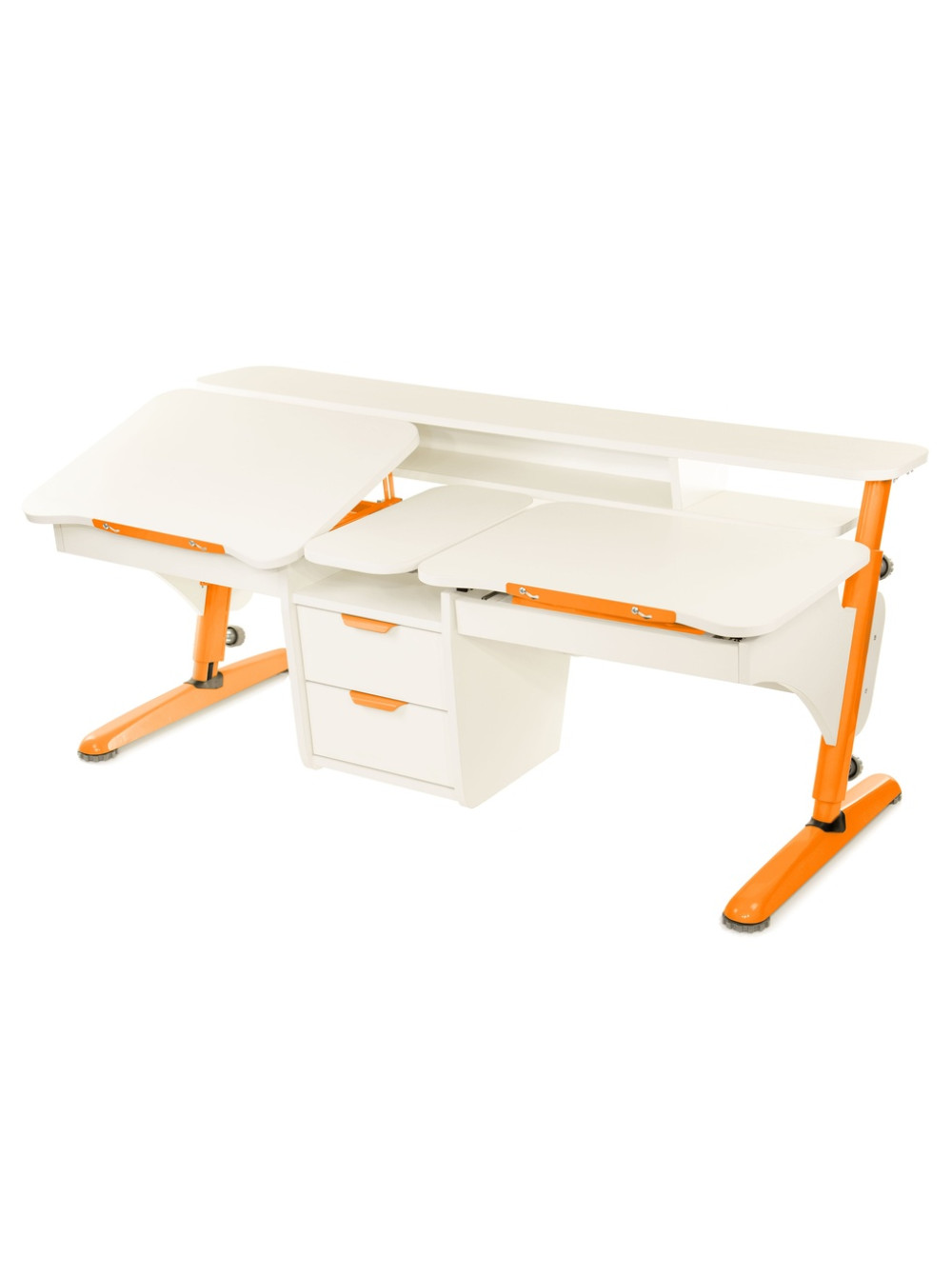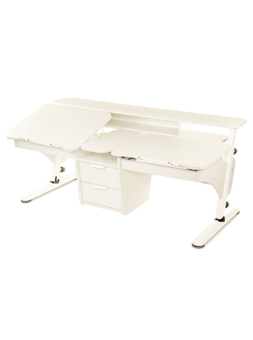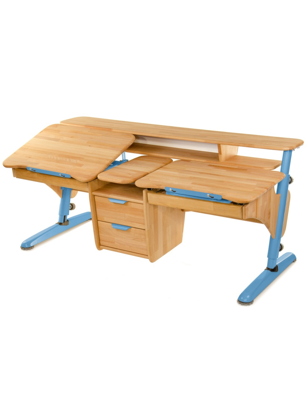 Висота може бути однакова для двох робітників місць, але при цьому кожна дитина зможе виставити зручний кут нахилу стільниці для себе від горизонтального положення до тридцять градус.