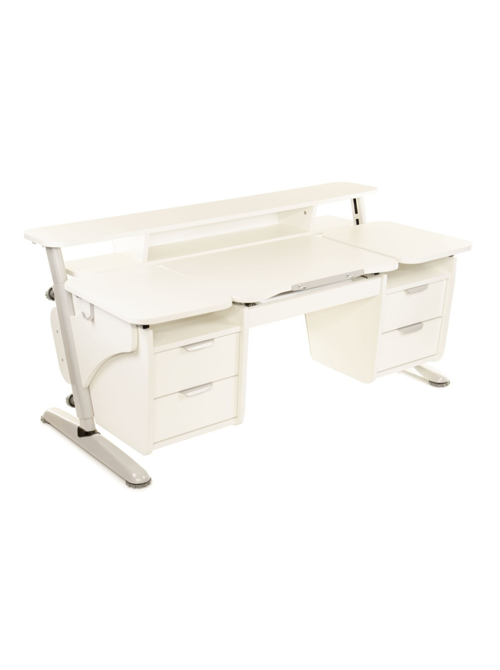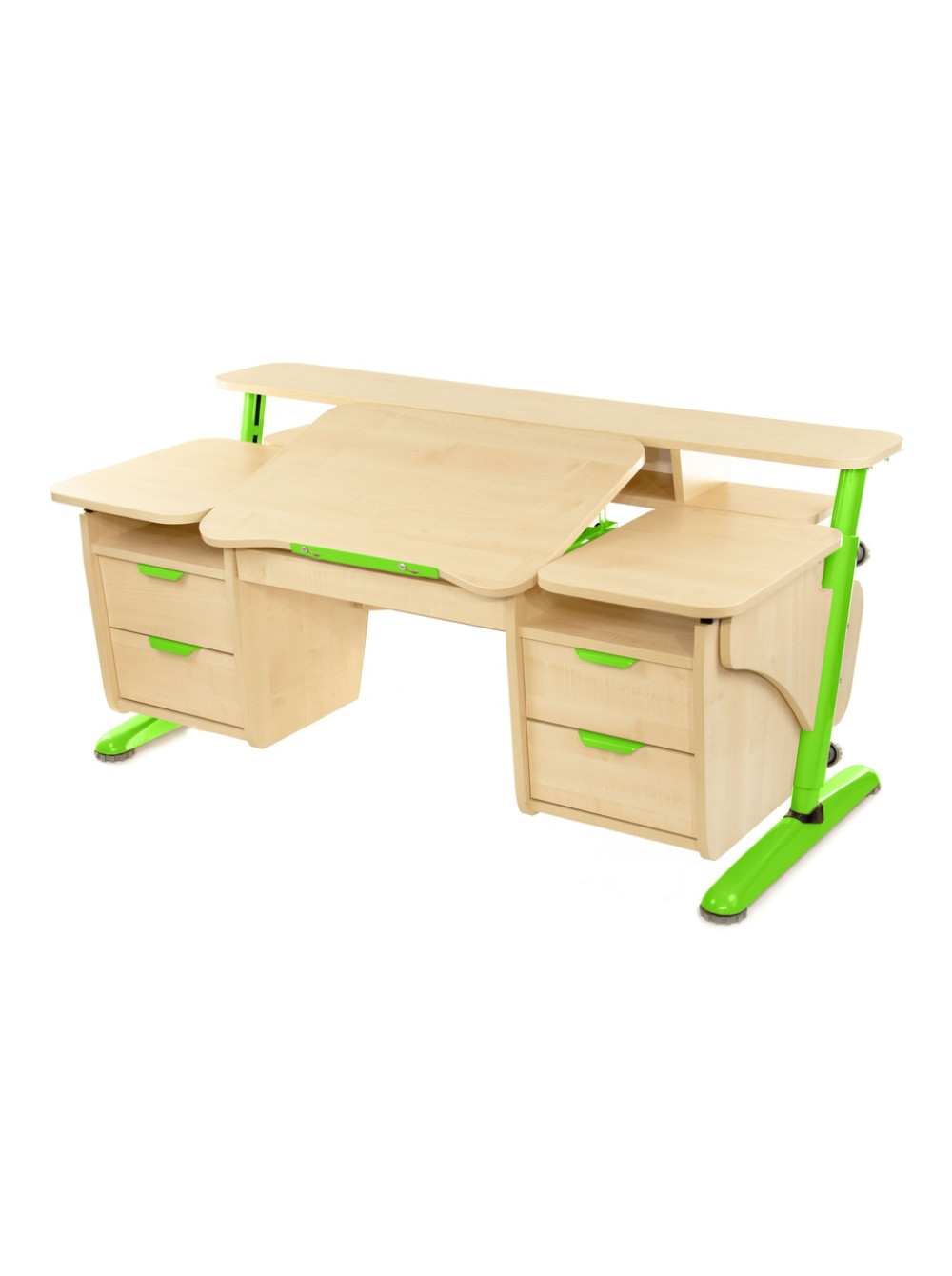 Парта-трансформер з двома тумбами Ергономіка - виріб із стильним і красивим дизайном, відмінної якості і максимально зручне для виконання домашніх і розміщення усього необхідного приладдя і навчальних посібників.