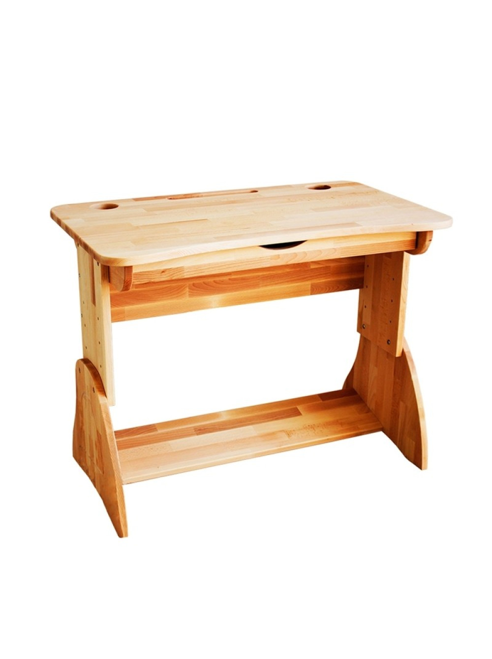 На стільниці є поглиблення для канцелярського приладдя (ручок і олівців) і отвір для склянки.