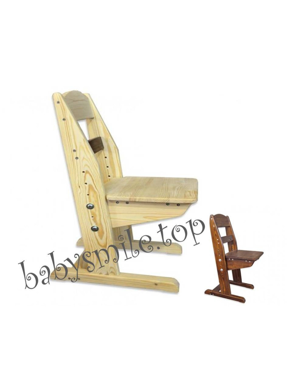 Стільчик із сосни тонований в темний колір, зростаючий разом з Вашою дитиною.