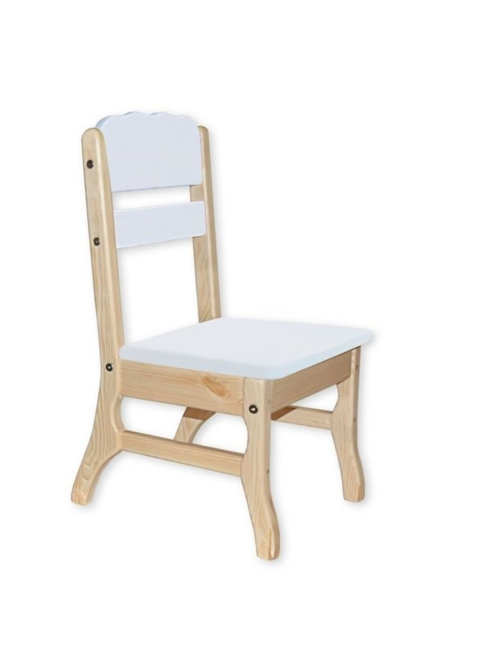 Стільчик дитячий від 2-х років дуже зручний в застосуванні для зовсім маленьких діток від двох років. Ніжки і основа стільця - колір натурального дерева, спинка і сидіння - п'ять варіантів забарвлень : білий, зелений, рожевий, бузковий, блакитний. Стільчик неабиякого дизайну повністю виготовлений з масиву сосни.