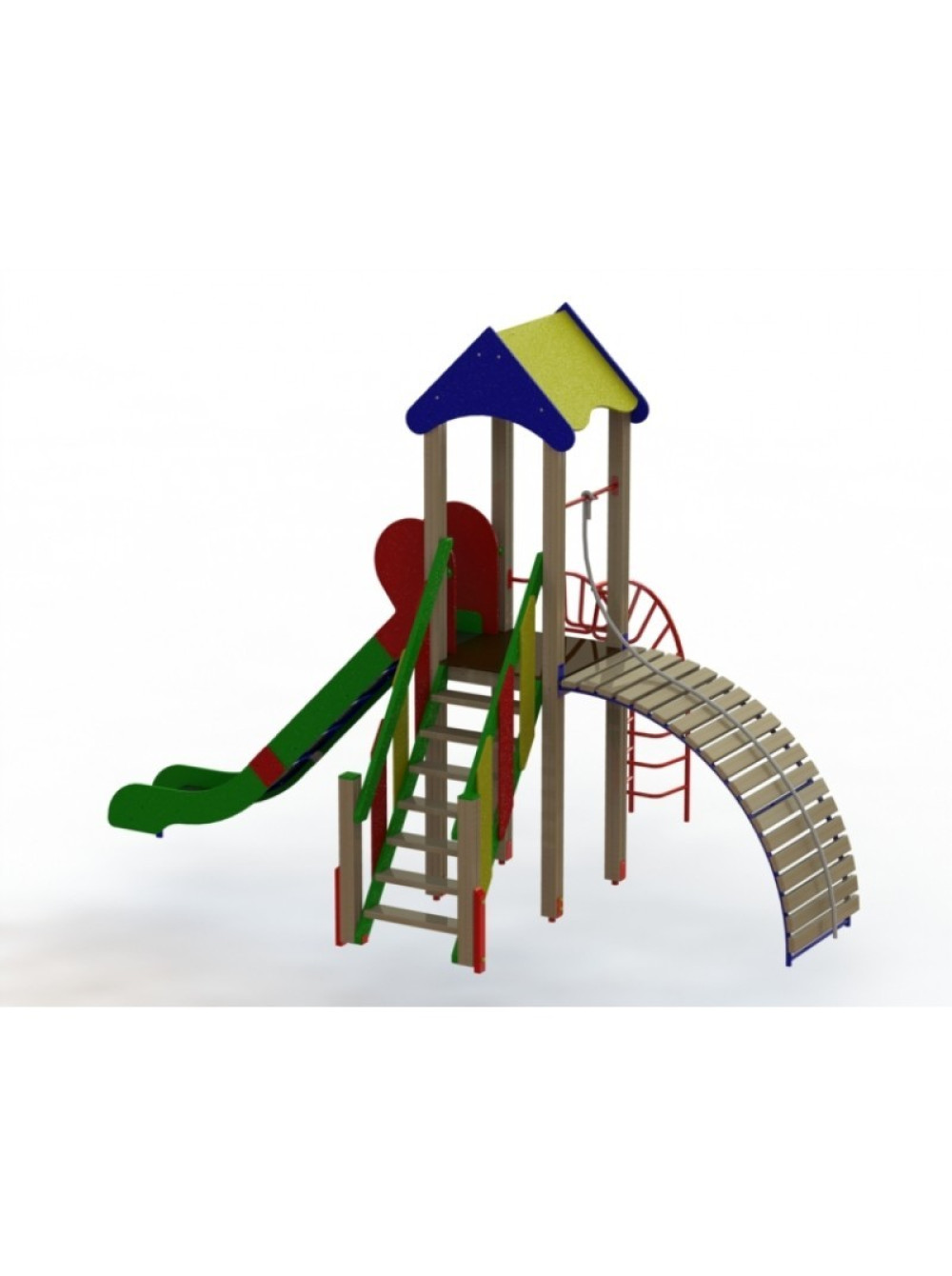 Дитячий майданчик БС-801.1 не залишить байдужим жодну дитину, яка любить веселитися на свіжому повітрі. Дитячий майданчик БС-701.1 підійде дітям будь-якого віку, починаючи від найменших і закінчуючи школярами. Модель виконана з металевих труб, дерев'яних брусів і поперечин, при цьому дерево покрите антисептиками і водорозчинними фарбами, а метал - полімерними фарбами.