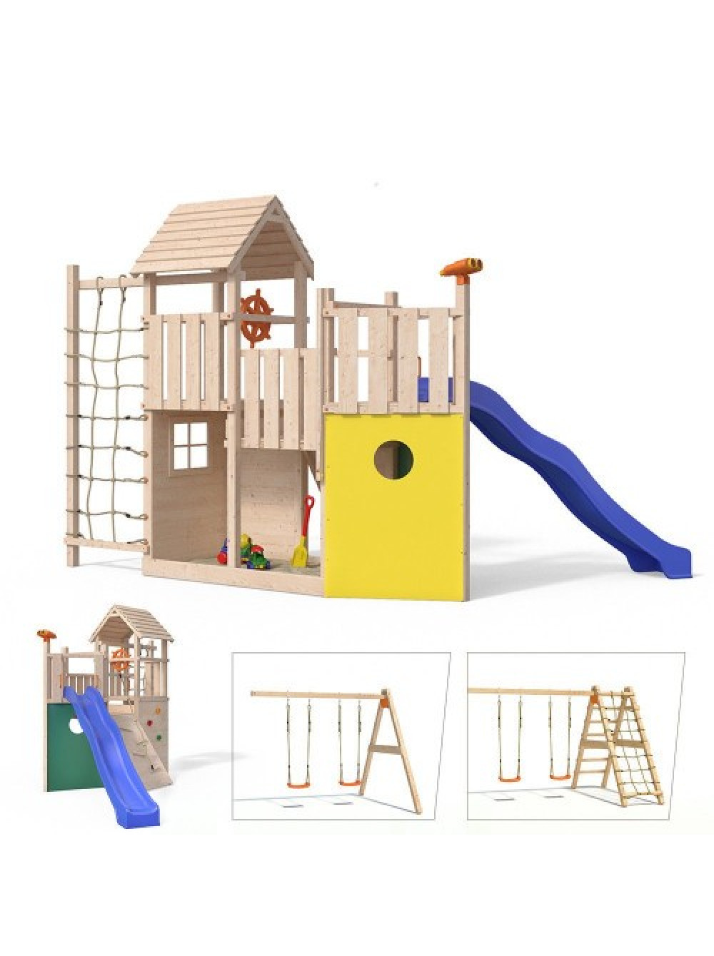 Малюки зможуть розпочати своє знайомство з комплексу з пісочниці і гойдалки, а трохи пізніше спробувати свої сили в лазінні по піратській сітці і спуститися з гірки за допомогою батьків, але це тільки на перших порах. Старші дітки зможуть організовуватися в різноманітні ігрові історії, придумані ними по настрою, використовуючи підручні можливості інтер'єру : штурвал, бінокль, канат, скалодром. А у їх батьків з'явитися більше вільного часу для себе коханих.