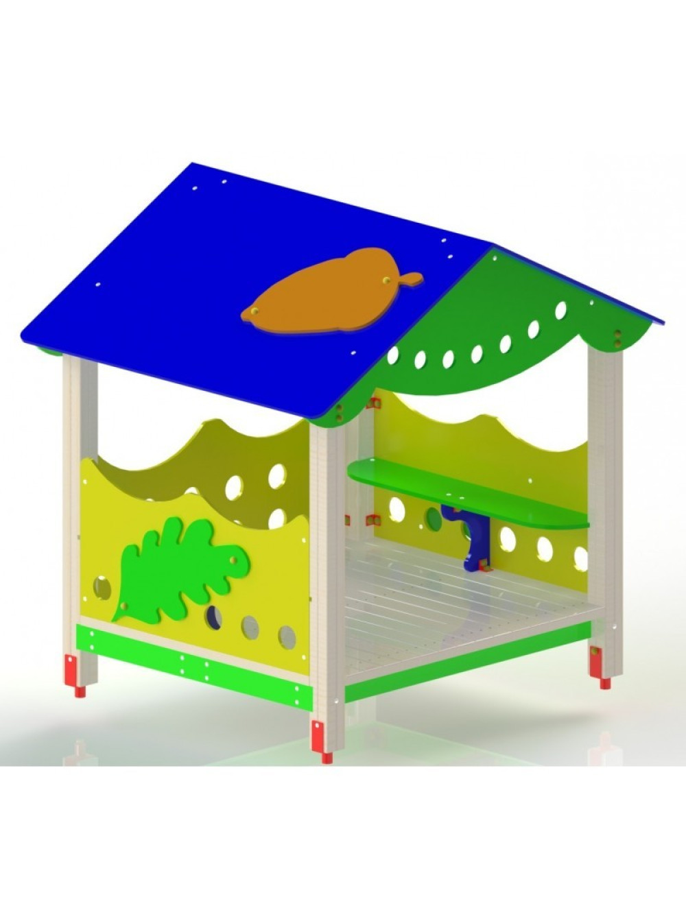 Будиночок-веранда Дубок - це невід'ємний елемент дитячих майданчиків, адже так цікаво дітям ховатися або грати в різноманітні ігри пов'язані з будиночком. Будиночок-веранда Дубок виконана з високоякісних матеріалів, а саме металевих і дерев'яних компонентів. Будиночок-веранда має всередині 2 дерев'яні лавочки для відпочинку маленьких непосид.