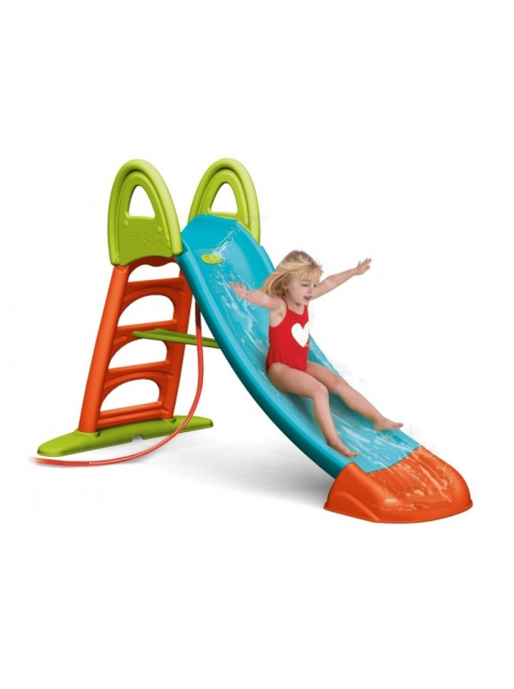 Виконана з пластикової маси, не вигоряє на сонці. До основи спуску можна підвести шланг з водою і направити його на гірку. Стікаючи по гірці, вода збільшує швидкість ковзання, особливо приємним для дітвори подібна розвага буде в спекотний літній день.