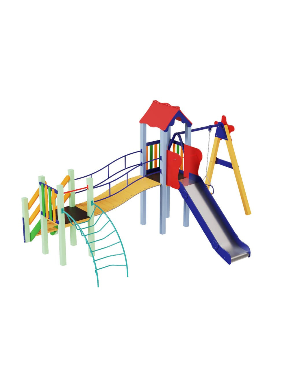 Ігровий майданчик вуличний Верблюденя 1.2 м підійде для невеликої території, при цьому кожна дитина зможе знайти собі заняття до душі. Ігровий майданчик складається з вежі з платформою, лазалки, містка, гірки і гойдалки на гнучкій підвісці. Майданчик Верблюденя зроблений з якісних матеріалів і сподобається малюкам яскравими і насиченими кольорами.