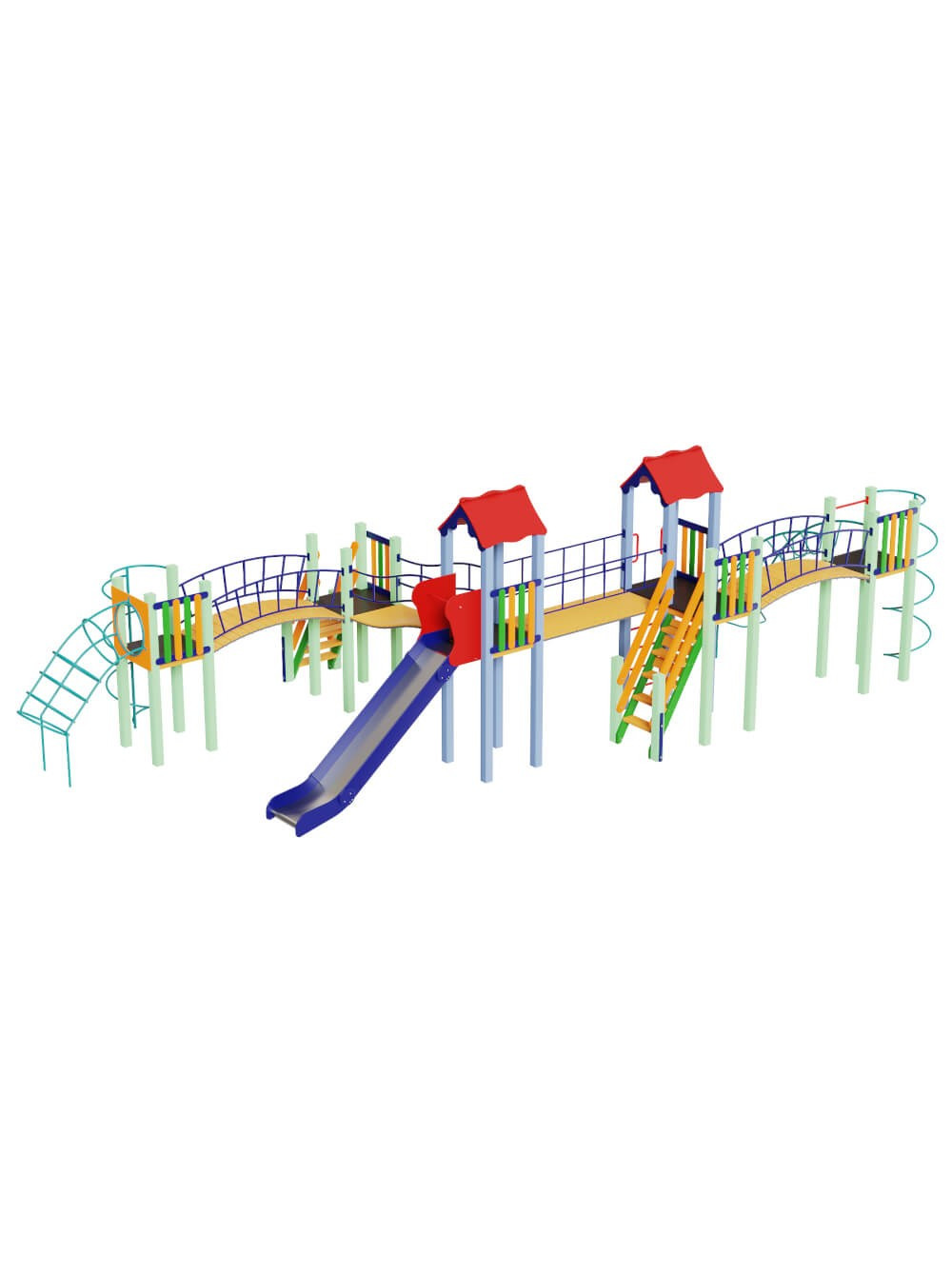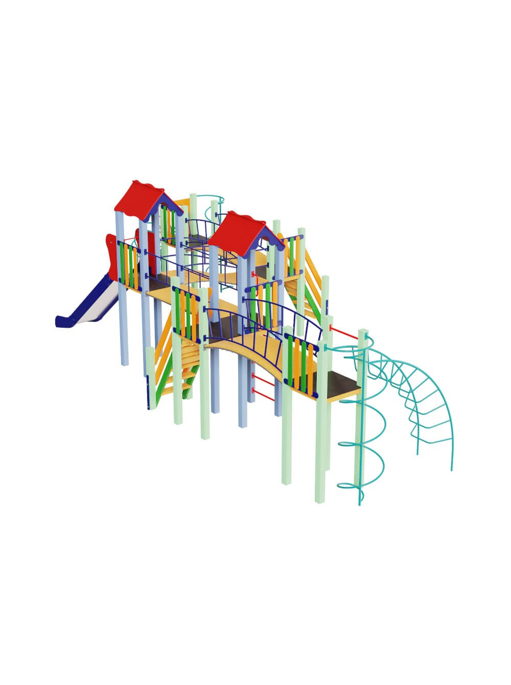 Ігровий майданчик вуличний Змійка 1.5 м підійде для великого дитячого майданчика. Модель включає 2 платформи і вежі, три опуклих містка, дві лазалки-спіралі, лазалки-тунелі, лазалки-ліани, дитячі гірки. Майданчик Змійка призначений для дітей у віці 6-12 років.