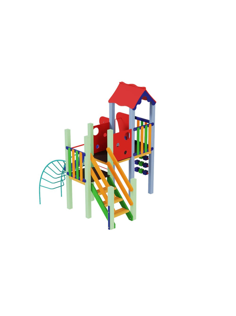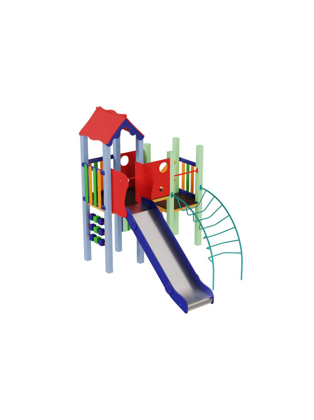 Ігровий майданчик Качечка 1.5 м - це вуличний дитячий комплекс, який характеризується яскравими і насиченими кольорами, багатофункціональністю і високою якістю. Ігровий майданчик качечка 1.5 м складається з вежі, переходу, лазалки-ліани і металевої гірки. Майданчик призначений для дітей від 7 до 12 років.