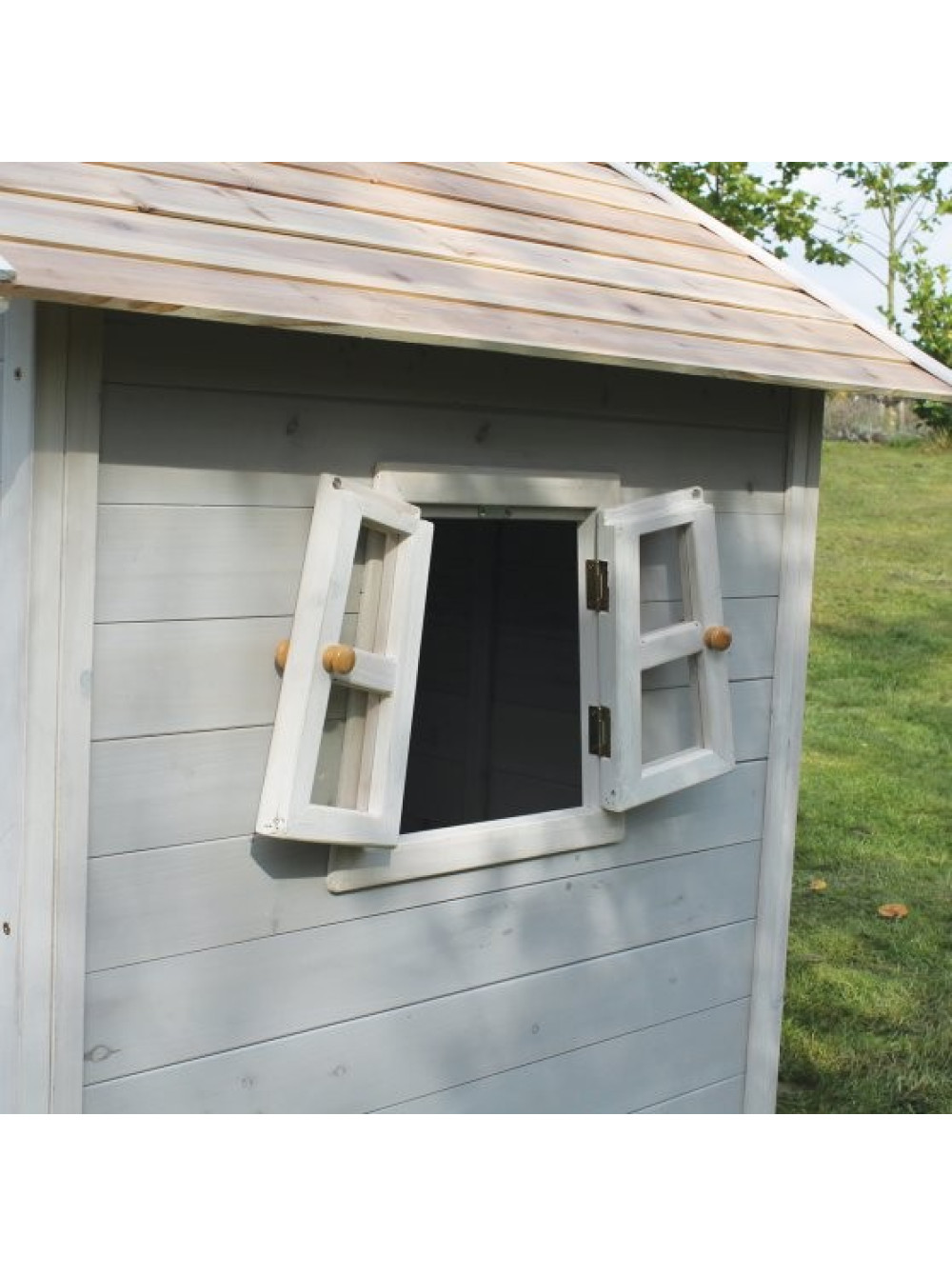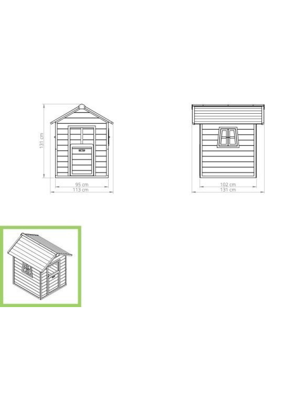 Дитячий дерев'яний будиночок Флігель - виконаний з натурального масиву сосни в мінімалістському скандинавському стилі для розміщення на вулиці, в саду або на території приватної садиби. Конструкція має компактні габарити, тому розмістити її можна навіть на невеликій території. Головне, знайти місце з рівною поверхнею для ідеальної стійкості. Родзинкою цього дизайну є двері у вигляді хвіртки, що особливо актуально спекотним літнім днем.
