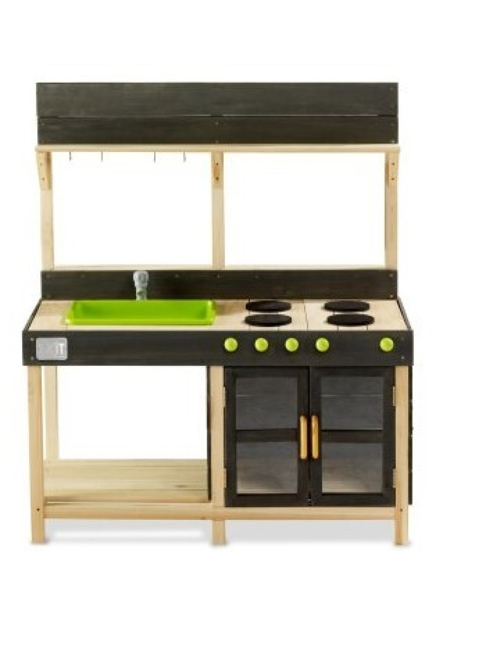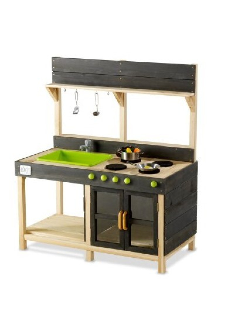 Дерев'яна ігрова кухня EXIT Toys виготовлені з кедрового дерева, сертифікованого FSC® (FSC 100scs - COC - 000652 - WH). Цей тип дерева не розшаровується і, природно, стійкий до погодних дій, таким як дощ, і тому стійкий до гниття деревини. Вам не треба обробляти дерев'яні вуличні кухні EXIT перед використанням, діти можуть відразу ж безпечно пограти з ними.