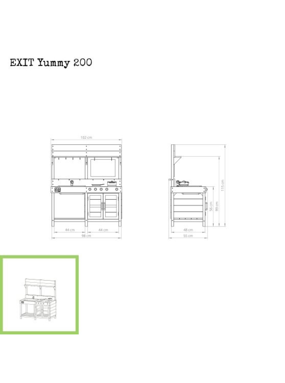 Ігрова кухня дерев'яна EXIT Yummy 200 - унікальна і універсальна ігрова кухня для дітей у віці від 2 до 8 років. Кухня обладнана усім необхідним побутовим приладдям: плитою, раковиною з краном, а також кухонним начинням і їжею.