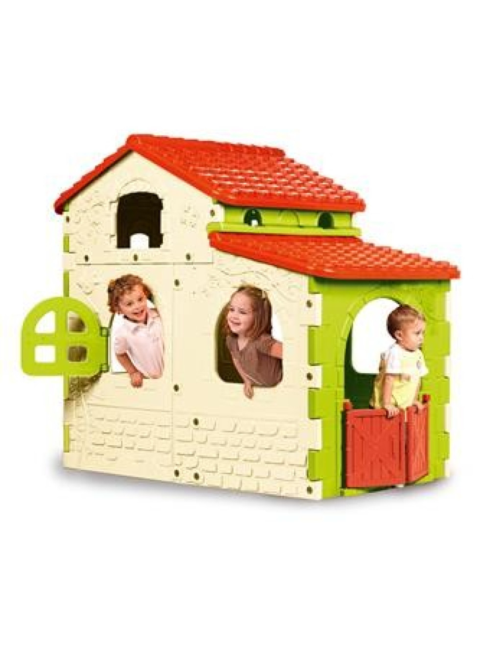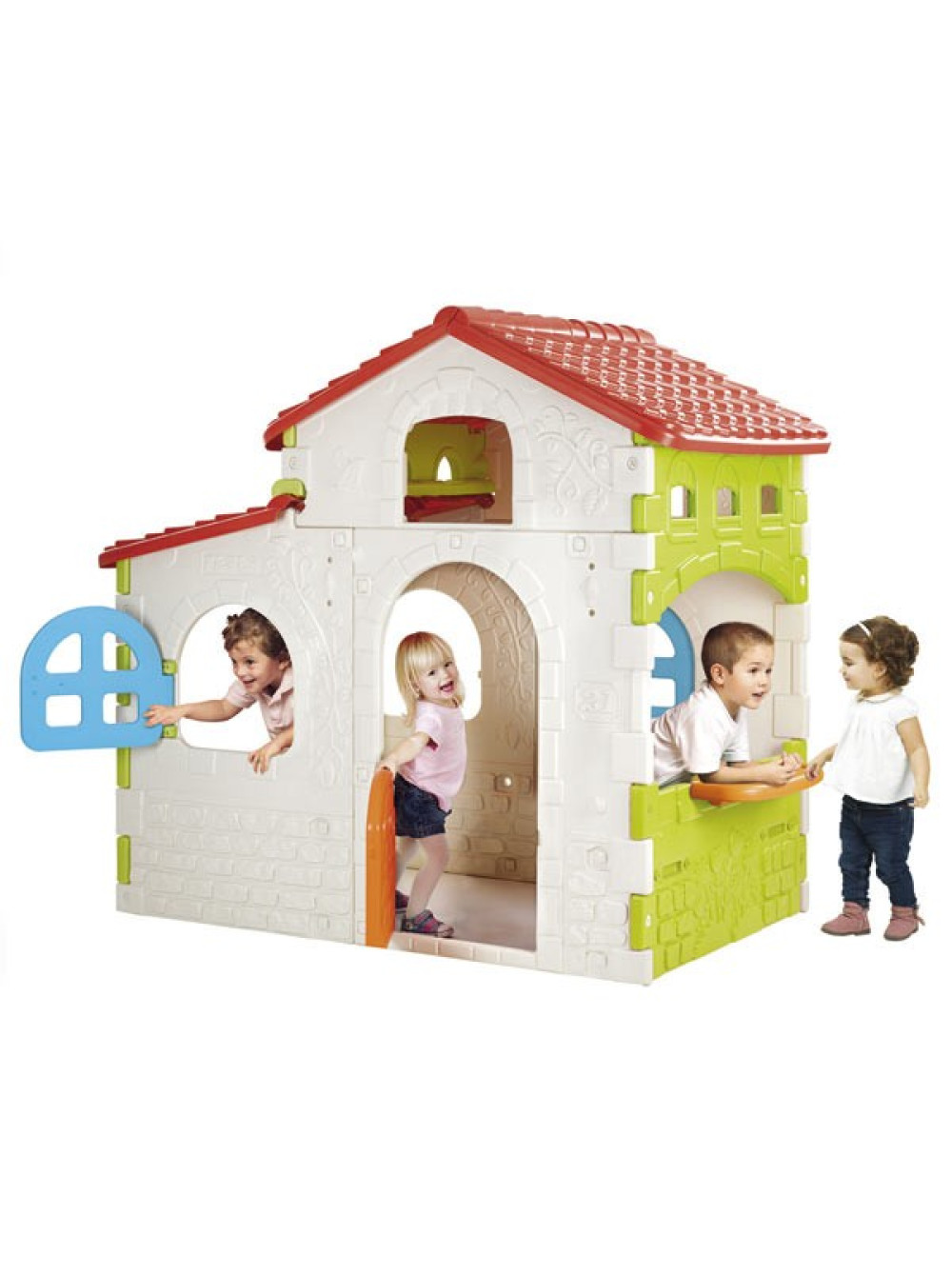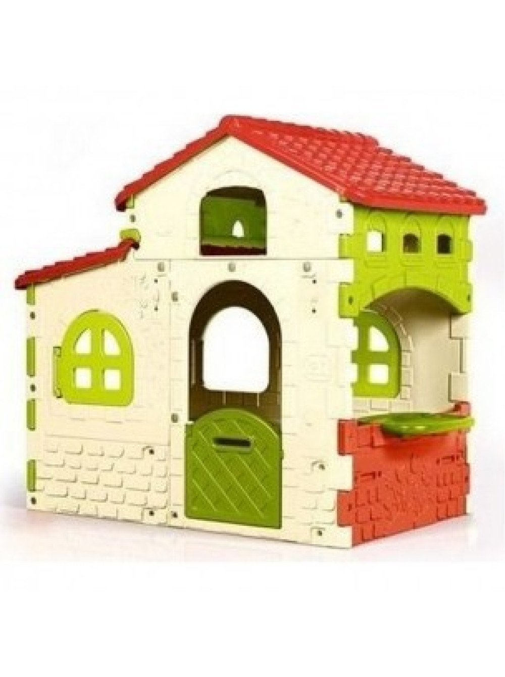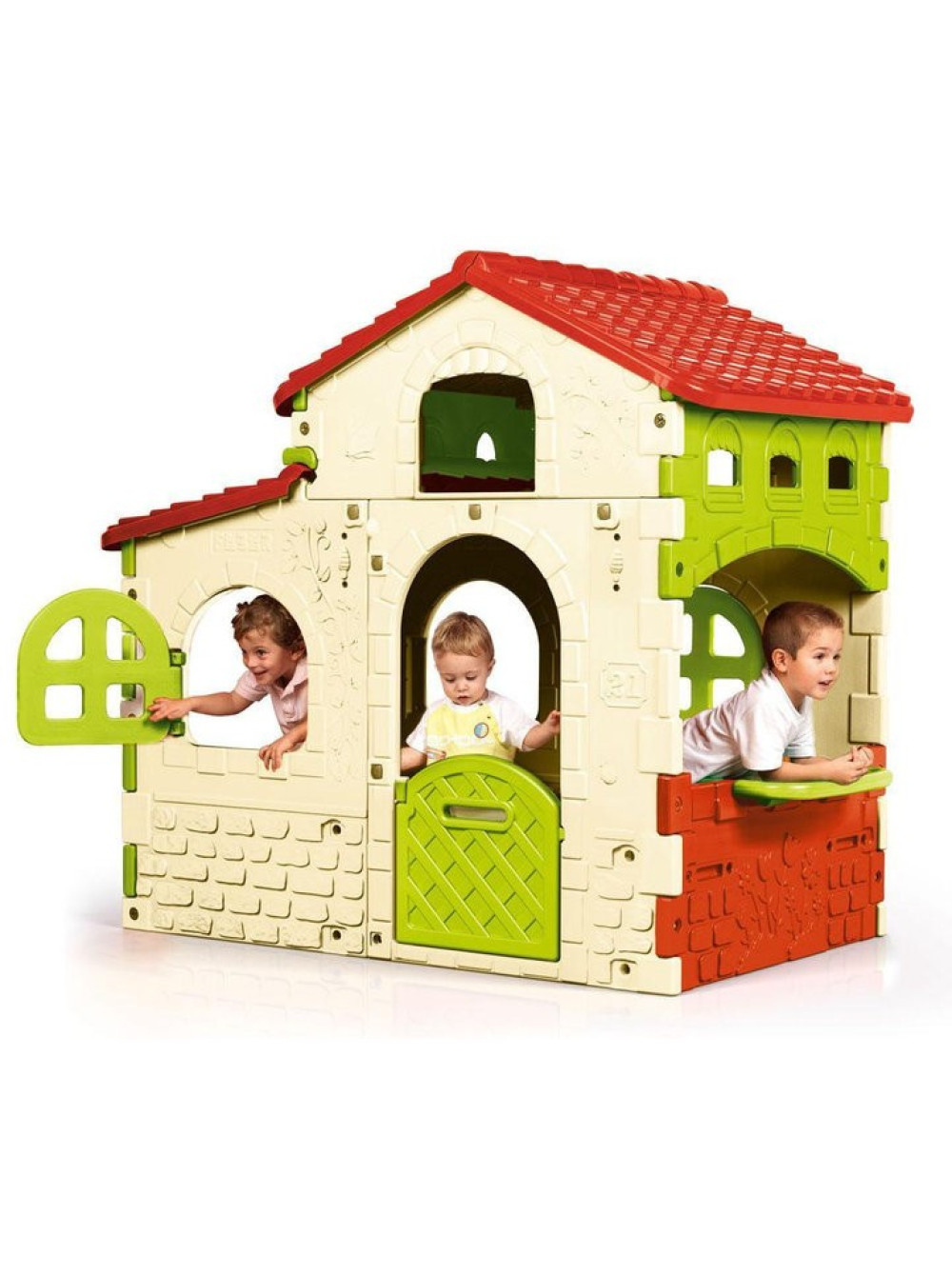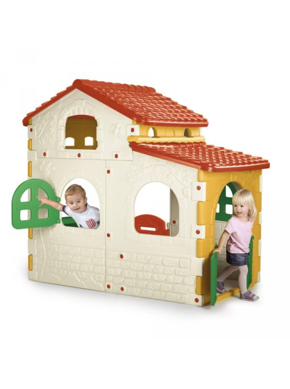 Дитячий будиночок Пастила Feber повністю виправдовує свою назву, миленький і гарненький, ніби з їстівної помадки, що так і хочеться його з'їсти. Дизайн виконаний в середземноморському стилі з кам'яною кладкою, арками і прикрасами у вигляді ліплення в центральній частині.