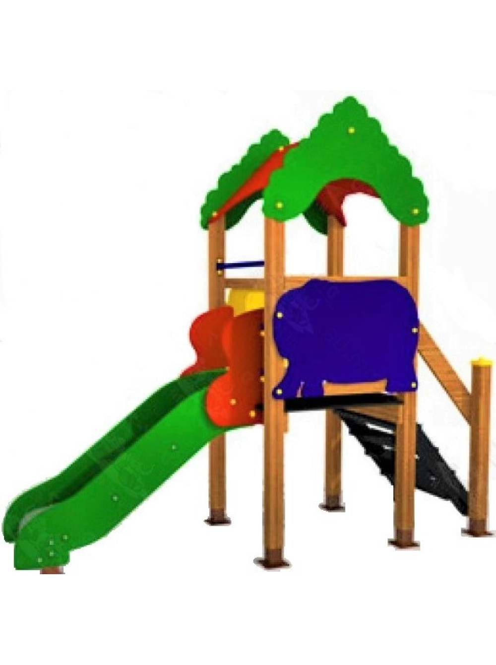 Дитяча гірка Паркова вежа - гідний, надійний і якісний варіант для розміщення у будь-якому громадському місці, де гуляють мами з дітьми. Гірки - це швидкий, веселий і хвилюючий спосіб отримати задоволення, забравшись вгору і тут же нестримно спуститися вниз! Ця гірка цілком може замінити деякі найпростіші ігрові комплекси. У її комплектації є не лише спуск, але і міні-будиночок з вежею і дахом.