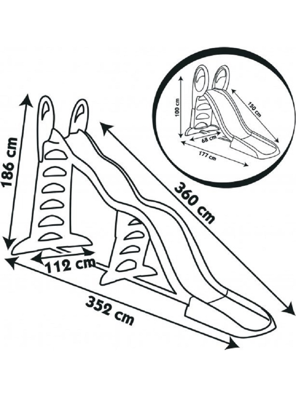 - Довжина спуску - 360 см