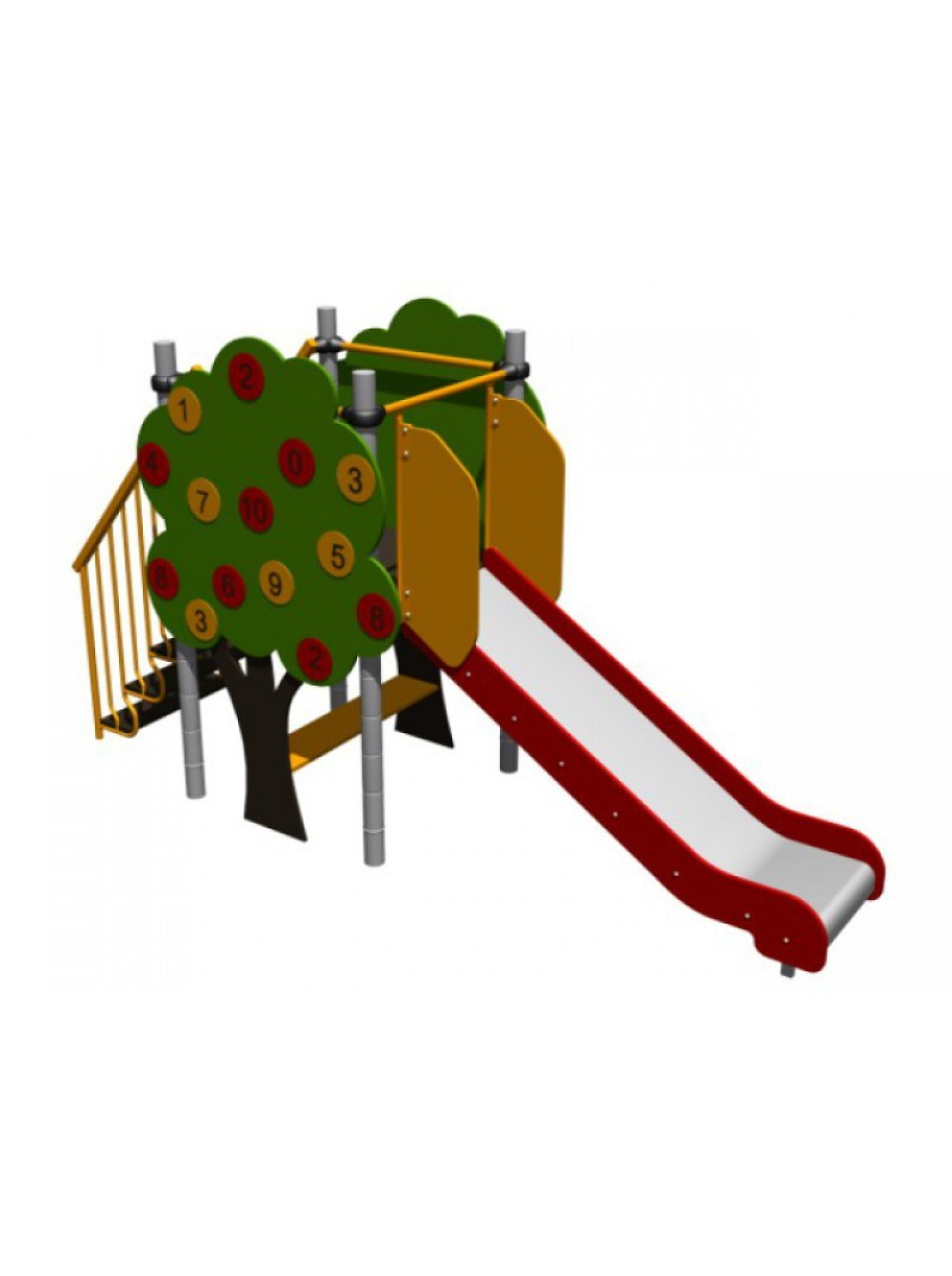 Але є один приємний бонус, дизайнери прикрасили звичайну конструкцію бічними стійками у вигляді дерева, роль яблучок на якому виконують різнокольорові круги з фанери з цифрами.