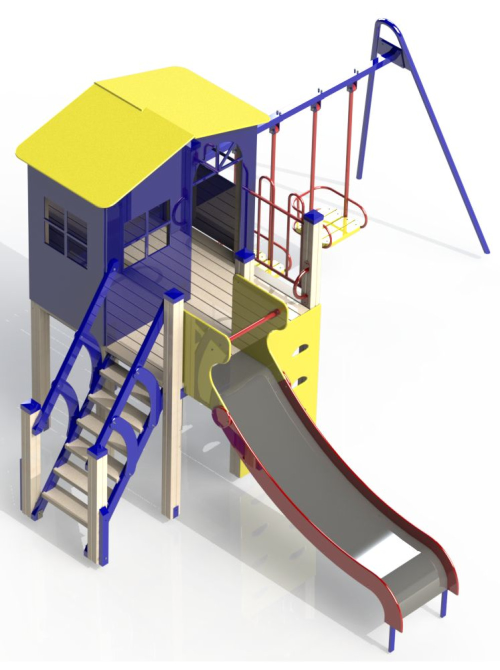 Будиночок, гірка і 2 гойдалки, відмінно підходять для ігор.