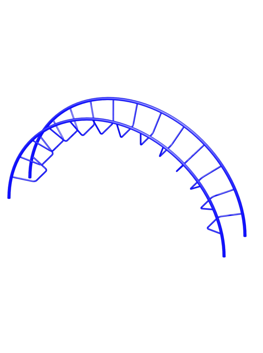 Рукохід для вулиці у вигляді вигнутого містка з перекладинами з металу.