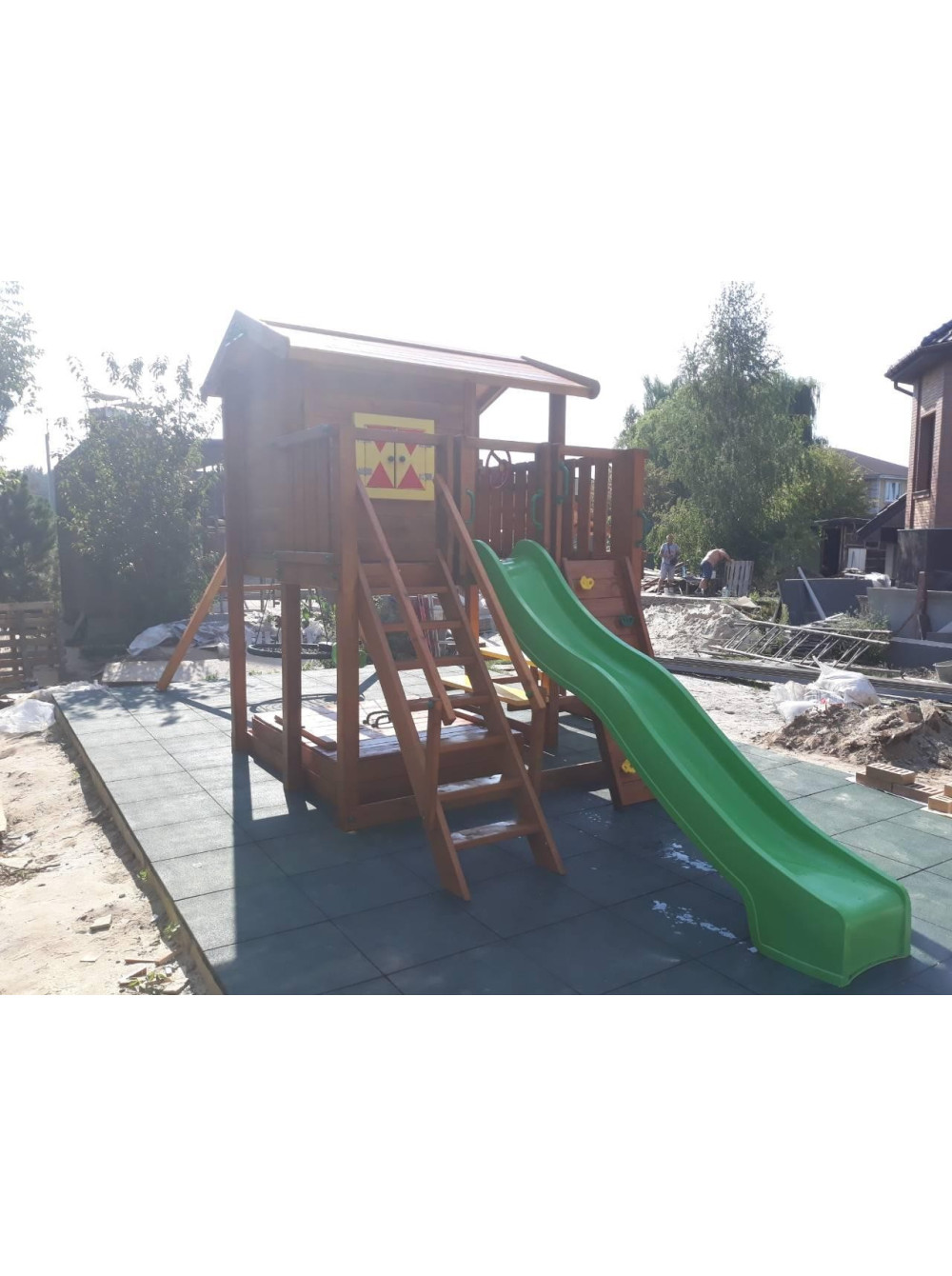 У виробництві використовується масив сосни першого і вищого сорту, просочене захисним покриттям і лляною олією, що забезпечує виробу тривалу експлуатацію і екологічність. Для складання використовуються кріплення з гальванічної сталі. Гірка з пластику HDPE високої міцності і витримує навантаження до 80 кг. Також можна доукомплектувати іншою гіркою з можливістю максимального навантаження до 250 кг, за додаткову плату.