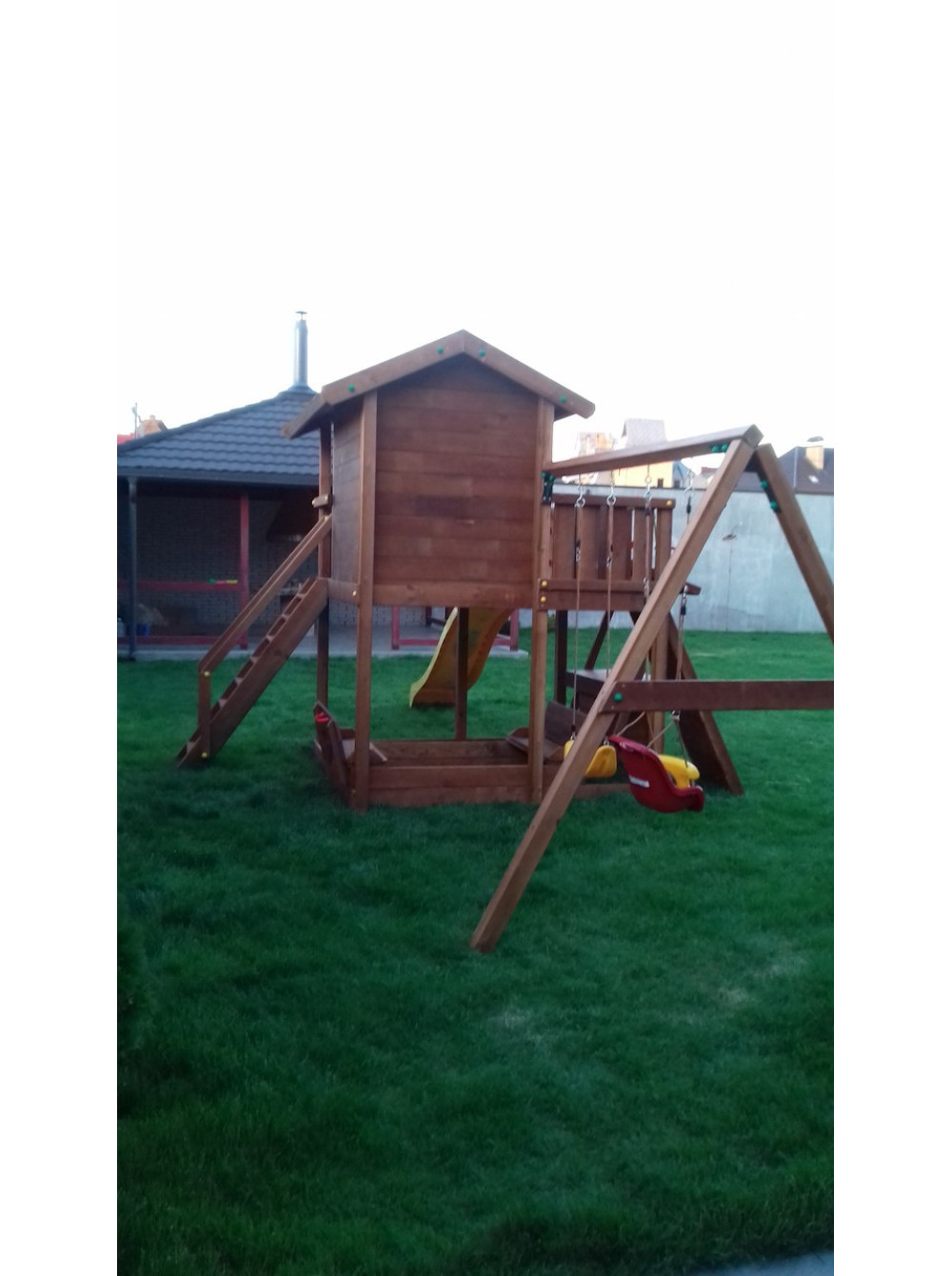 У виробництві використовується масив сосни першого і вищого сорту, просочене захисним покриттям і лляною олією, що забезпечує виробу тривалу експлуатацію і екологічність. Для складання використовуються кріплення з гальванічної сталі. Гірка з пластику HDPE високої міцності і витримує навантаження до 80 кг. Також можна доукомплектувати іншою гіркою з можливістю максимального навантаження до 250 кг, за додаткову плату.
